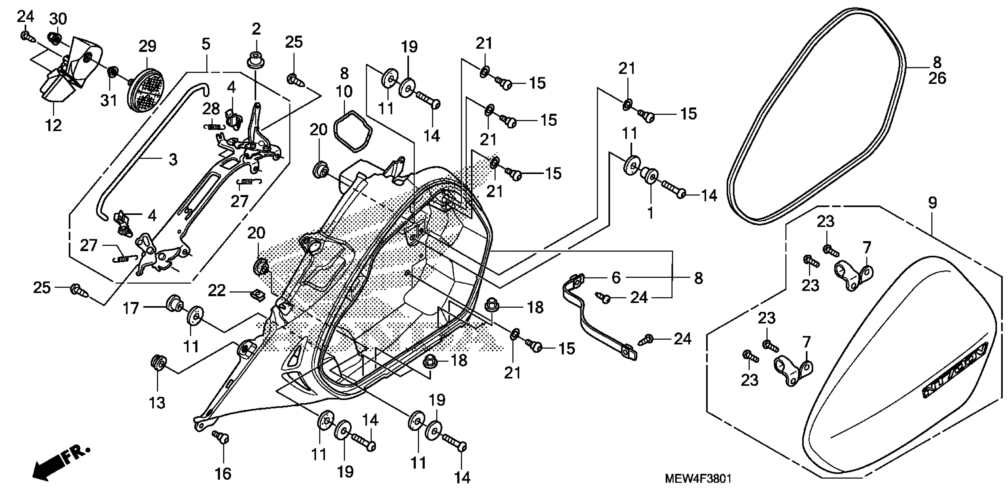 Honda NT700VAAC (11) NT700VA, ITA, VIN# ZDCRC595-BF010001 LEFT SADDLEBAG Diagram