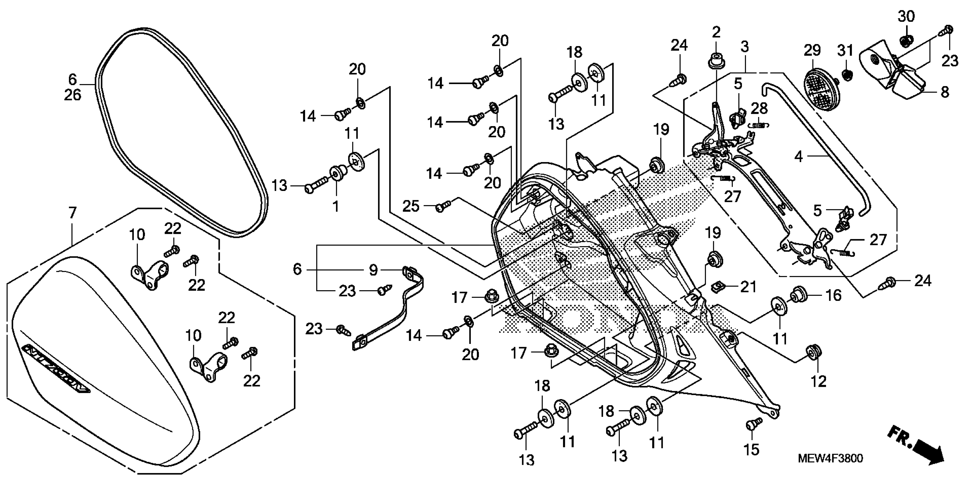 Honda NT700VAAC (11) NT700VA, ITA, VIN# ZDCRC595-BF010001 R. SADDLEBAG Diagram