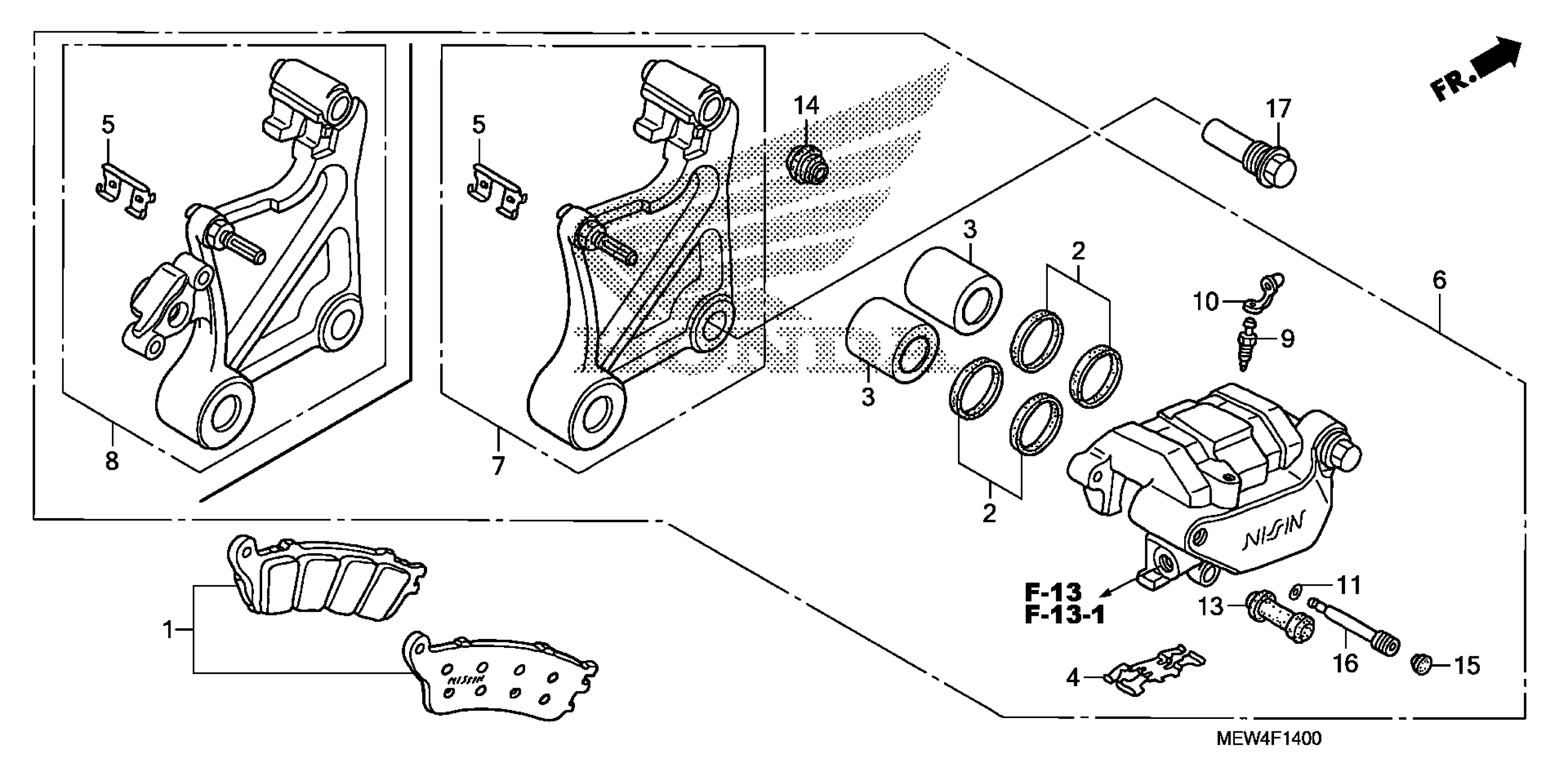Honda NT700VAAC (11) NT700VA, ITA, VIN# ZDCRC595-BF010001 REAR BRAKE CALIPER Diagram