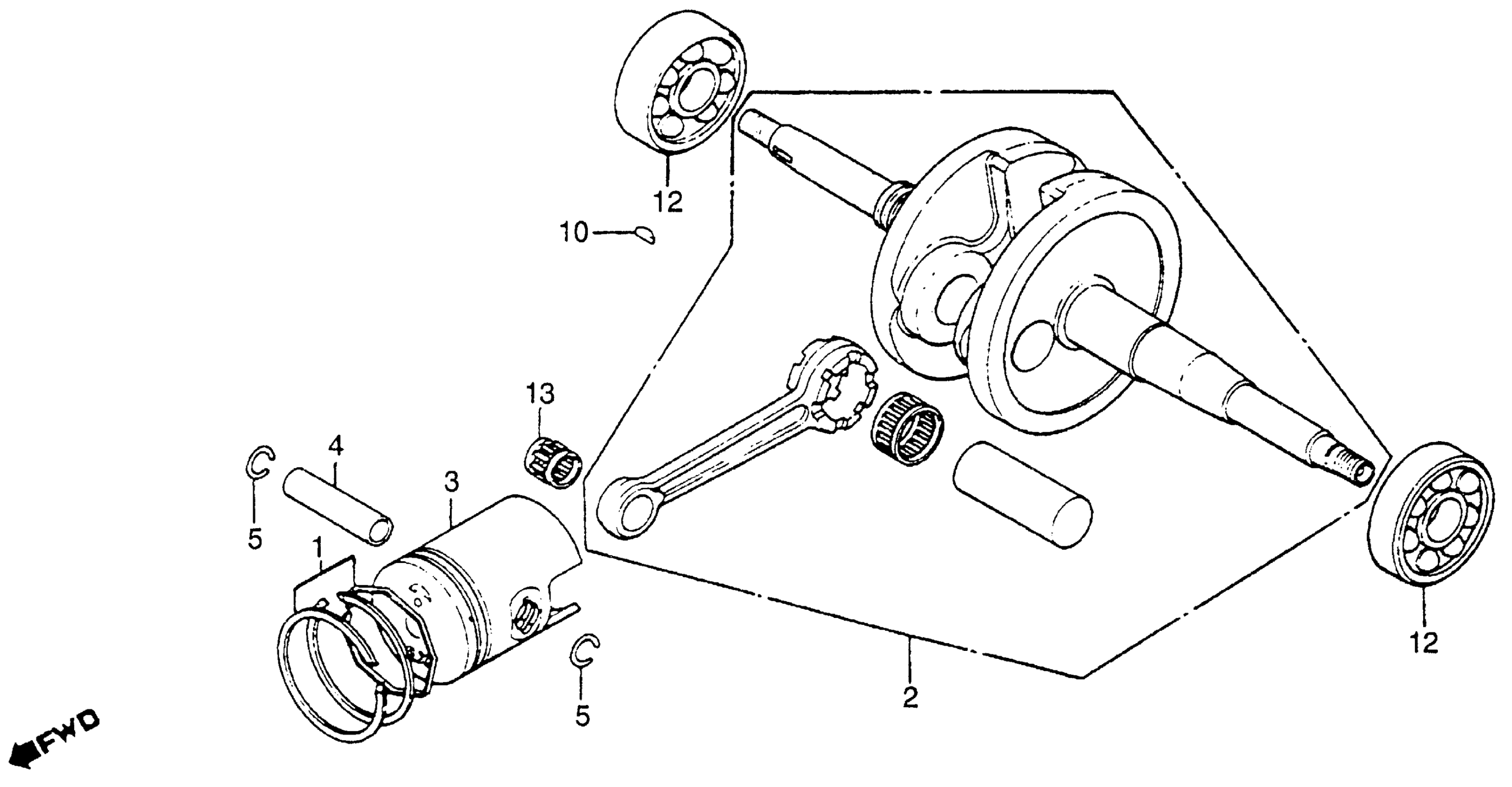 Honda NX50MA (82) EXPRESS SR, JPN, VIN# JH2AB040-CS100002 CRANKSHAFT + PISTON Diagram
