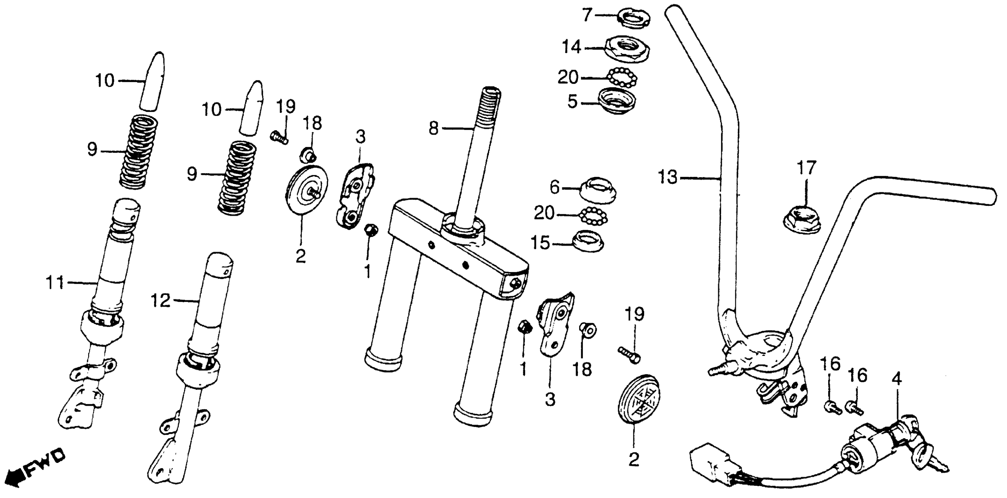 Honda NX50MA (82) EXPRESS SR, JPN, VIN# JH2AB040-CS100002 HANDLEBAR + FRONT FORK Diagram
