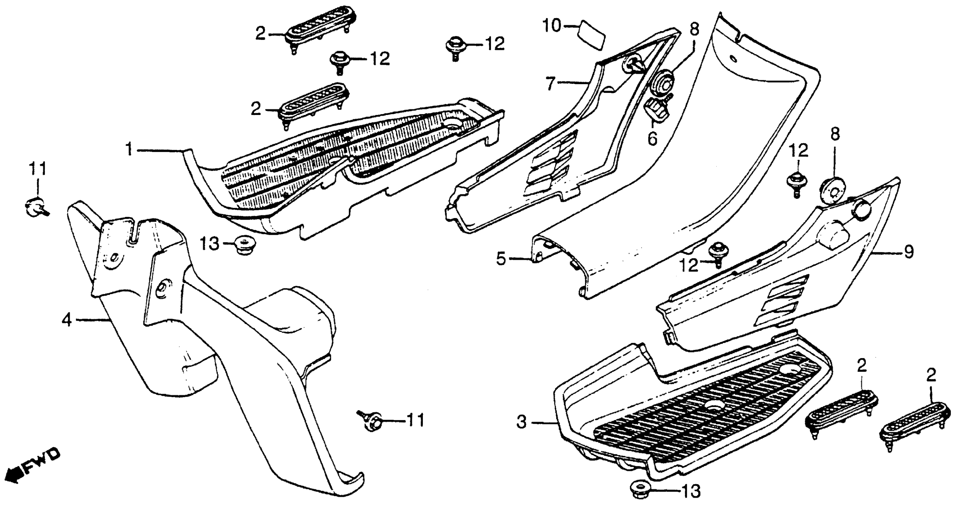 Honda NX50MA (82) EXPRESS SR, JPN, VIN# JH2AB040-CS100002 LEG SHIELD + FRAME COVER Diagram