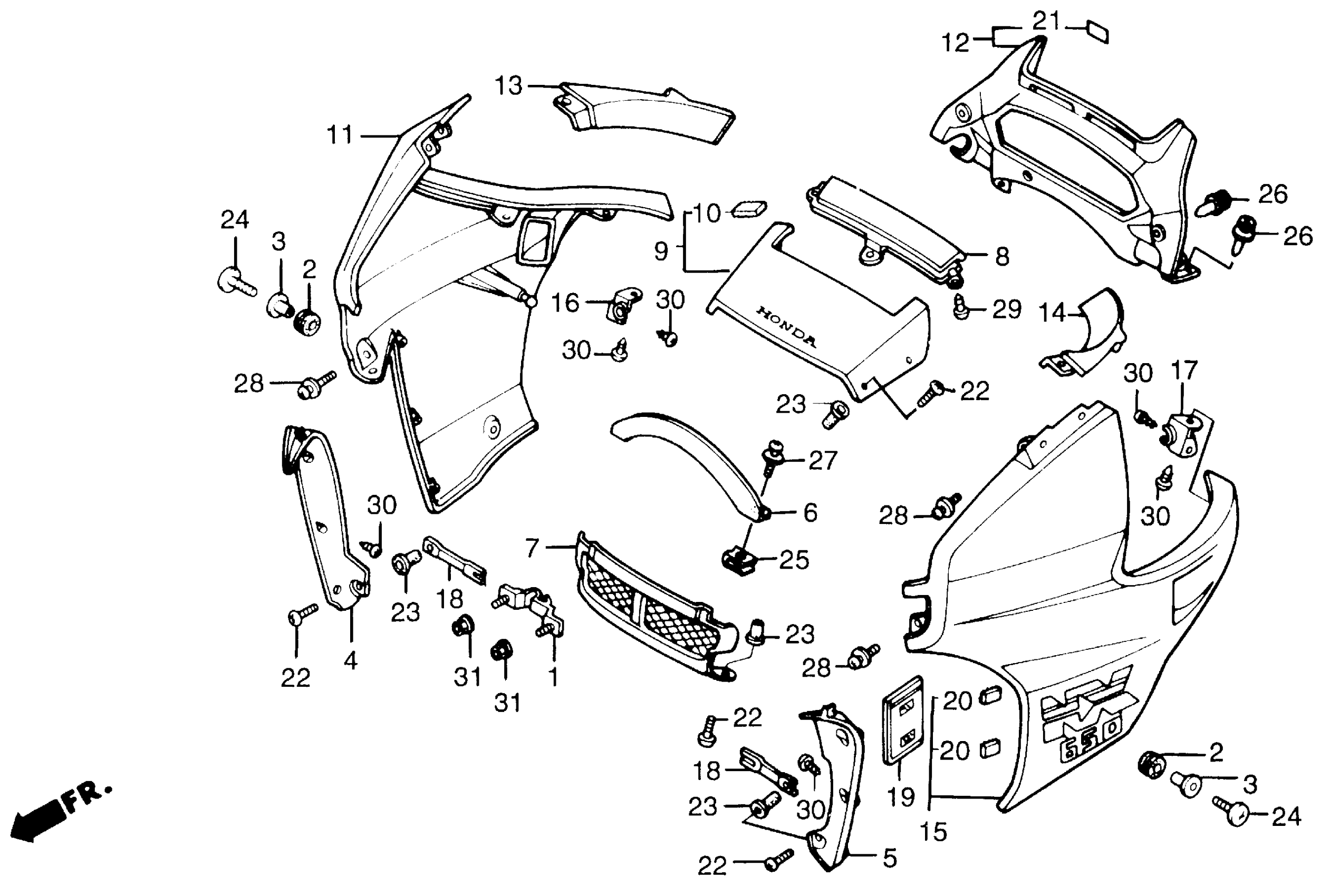 Honda NX650AC (89) MOTORCYCLE, JPN, VIN# JH2RD021-KK100004 COWL Diagram