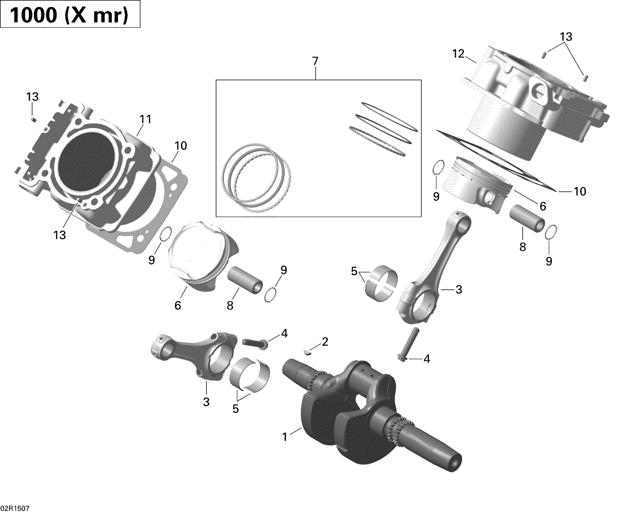 Can-Am Outlander 1000 EFI Xmr, 2015 Crankshaft, Piston And Cylinder _02R1507 Diagram