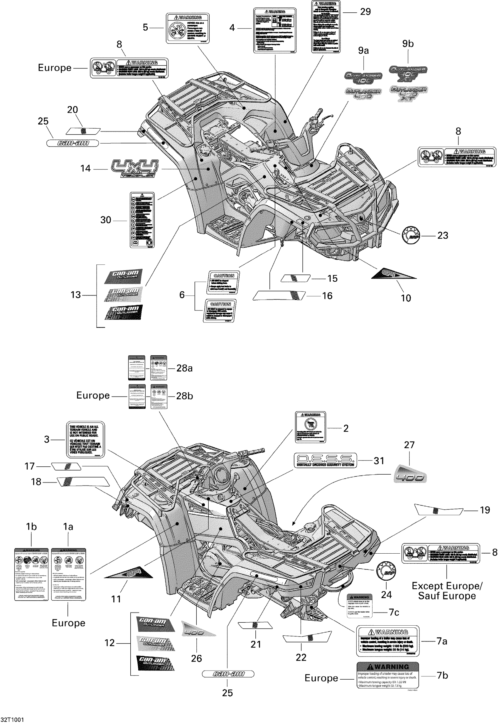 Can-Am Outlander 400 EFI, 2010 Decals Diagram