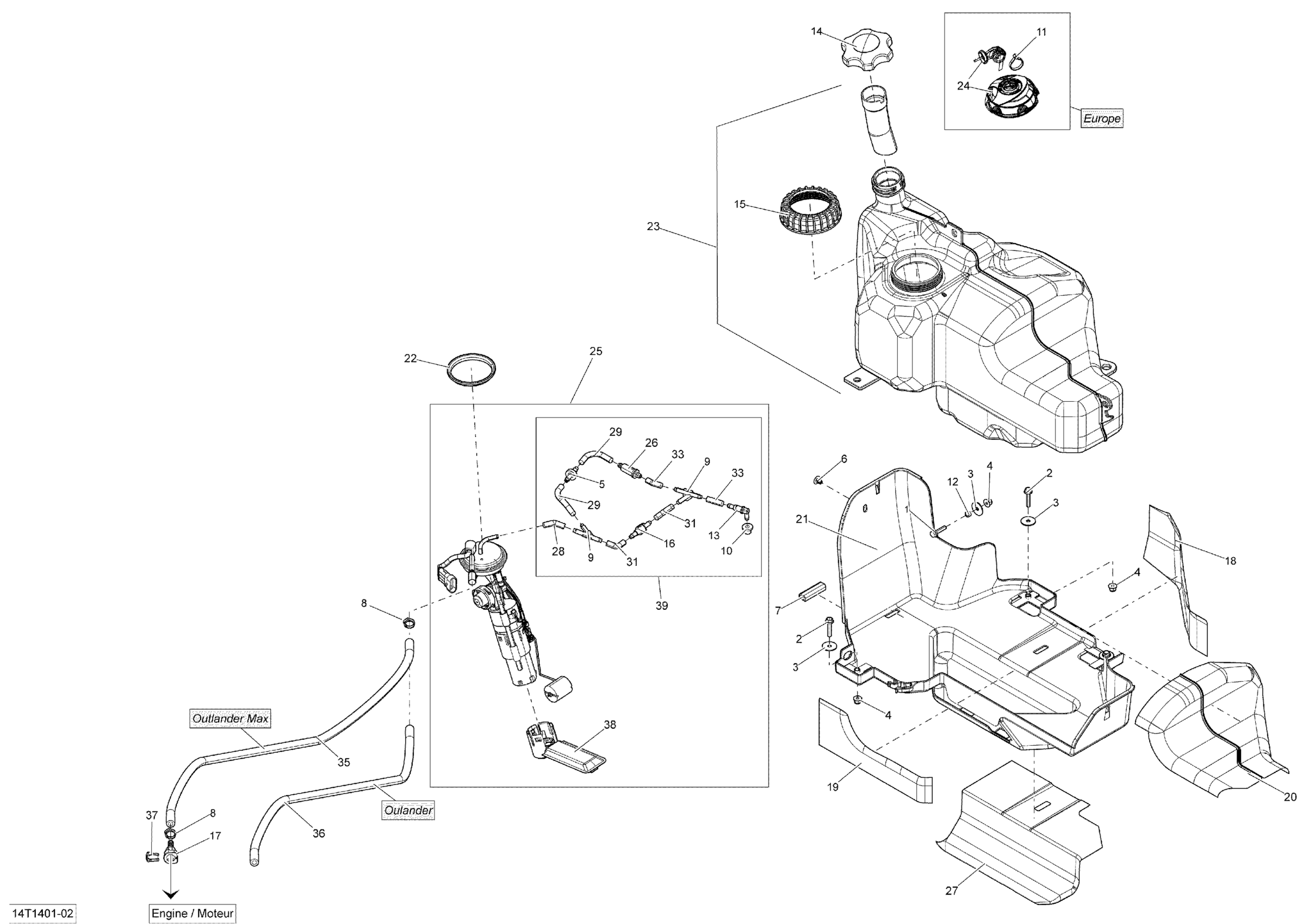 Can-Am Outlander 400 EFI, STD, XT, 2014 Fuel System Diagram