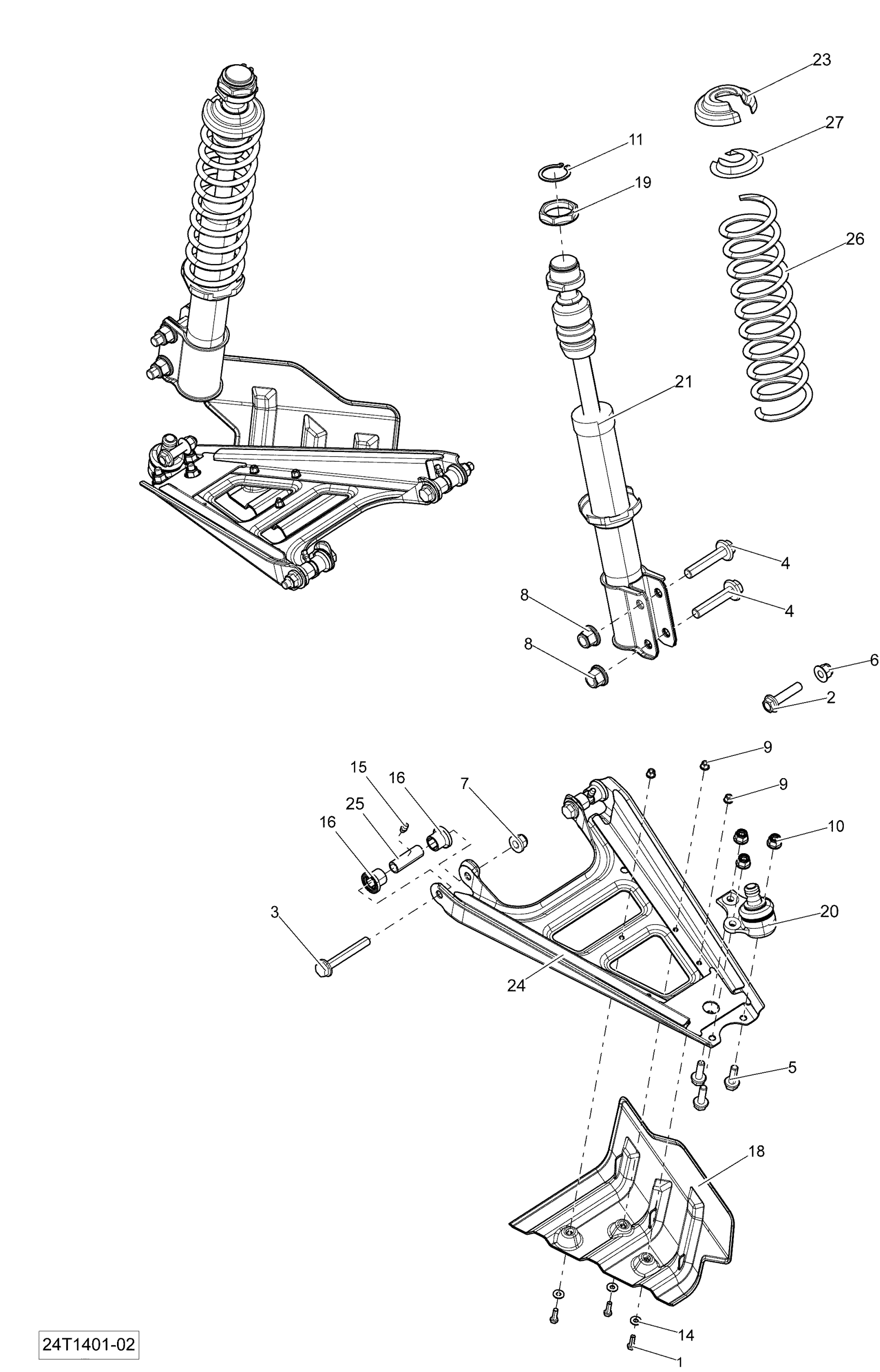 Can-Am Outlander 400 EFI, STD, XT, 2014 Front Suspension Diagram