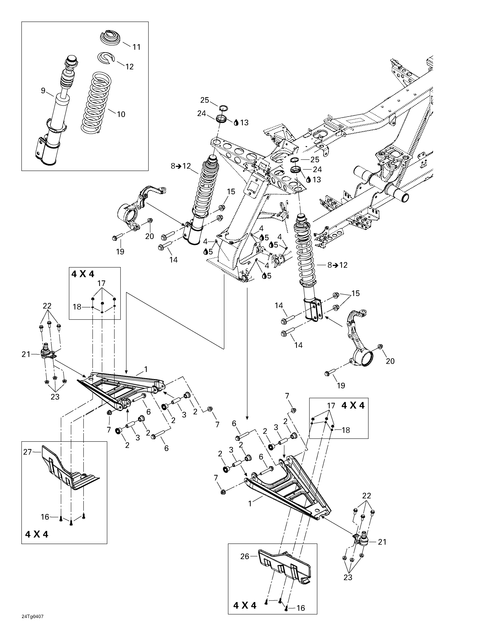 Can-Am Outlander 400 XT 4 X 4, 2004 Front Suspension Diagram
