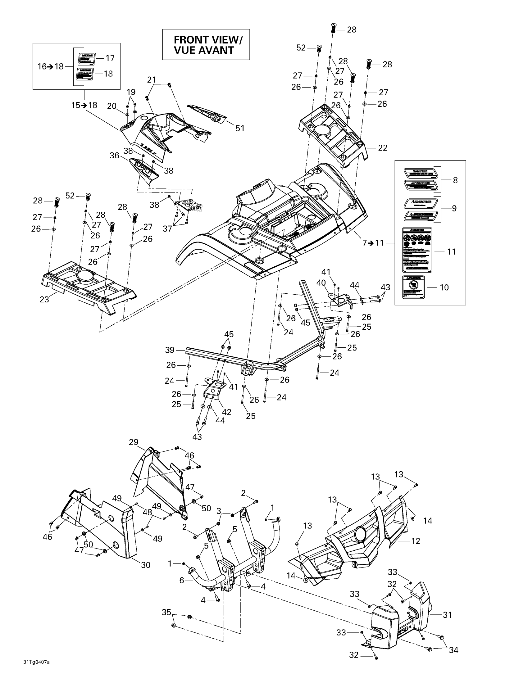 Can-Am Outlander 400 XT 4 X 4, 2004 Body And Accessories, Front View Diagram