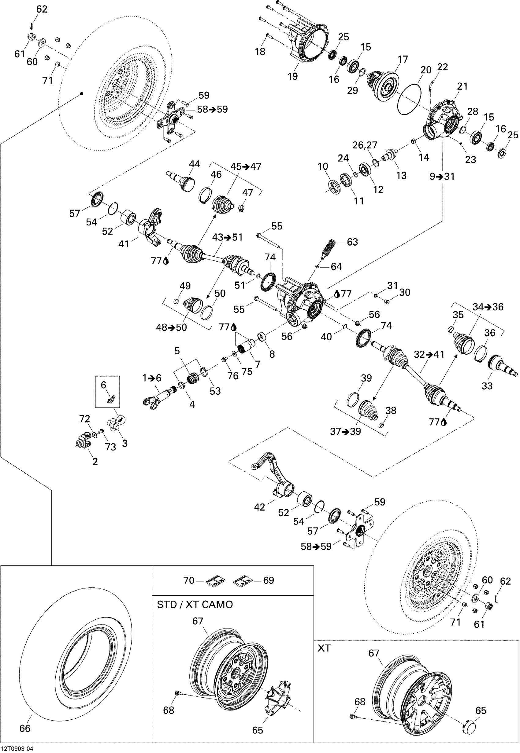 Can-Am Outlander 500 EFI XT, 2009 Drive System, Front XT Diagram