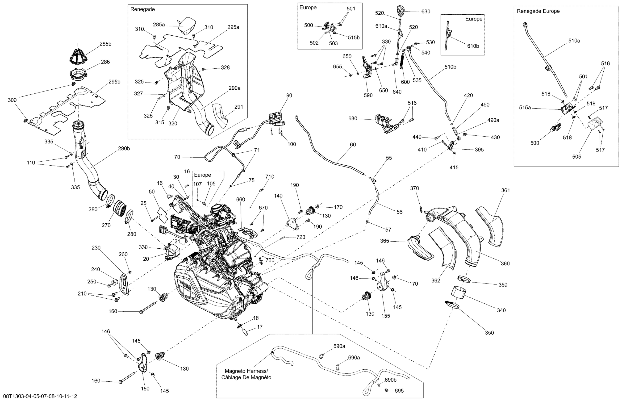 Can-Am Outlander 500EFI STD, DPS & XT, 2013 Engine And Engine Support Diagram