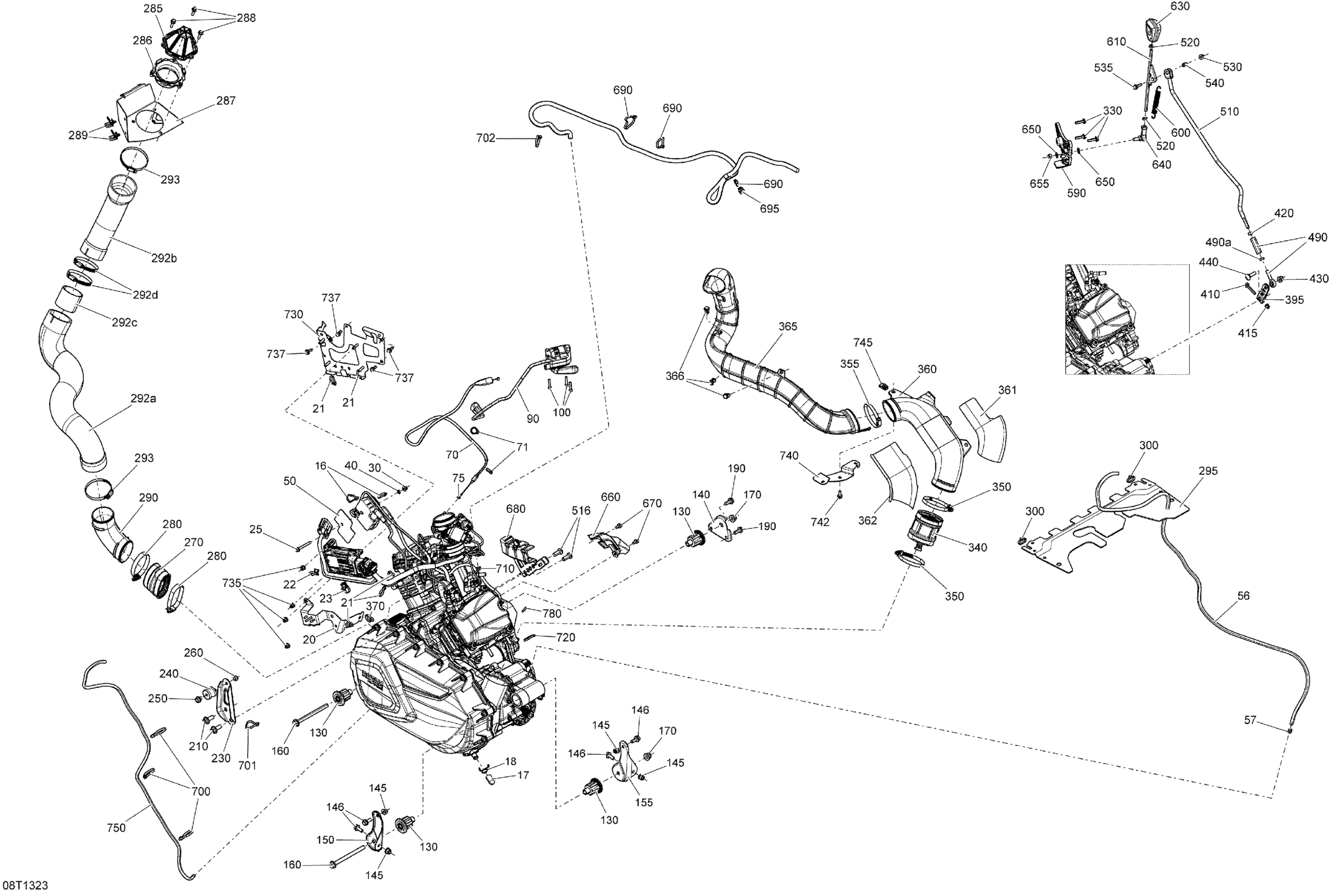 Can-Am Outlander 650EFI XMR, 2013 Engine And Engine Support Diagram