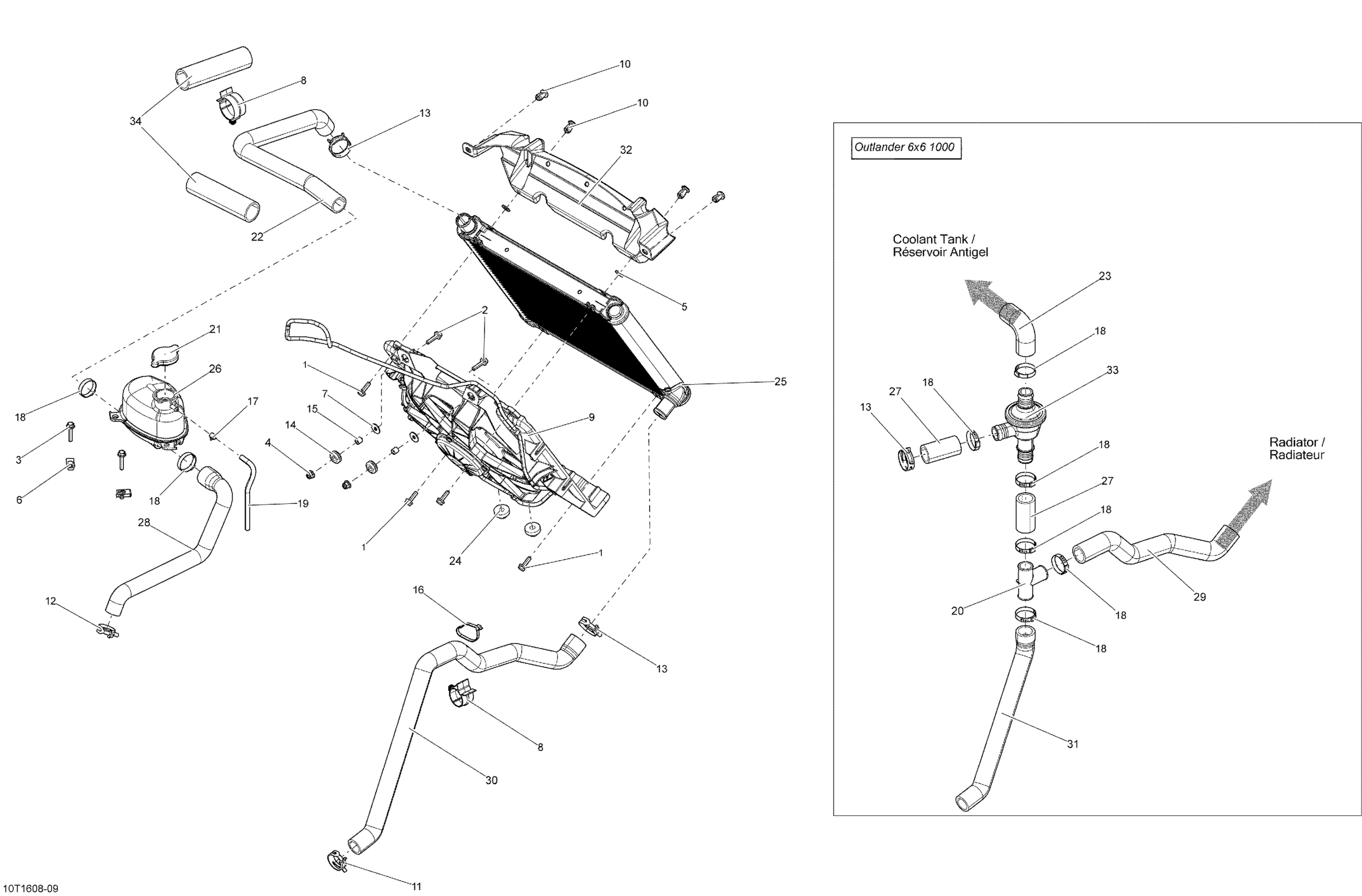Can-Am Outlander 6X6 - 650 EFI, 2016 Cooling System Diagram