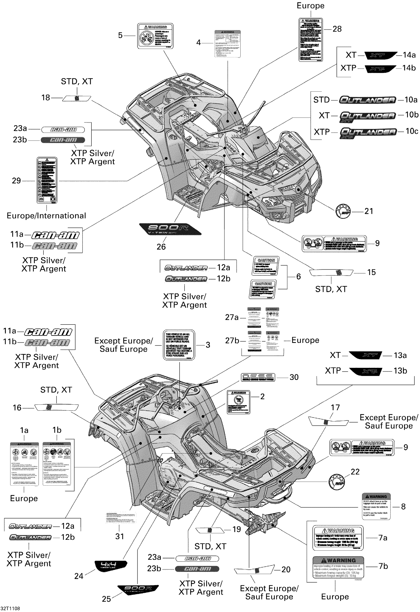 Can-Am Outlander 800R EFI, 2011 Decals Diagram