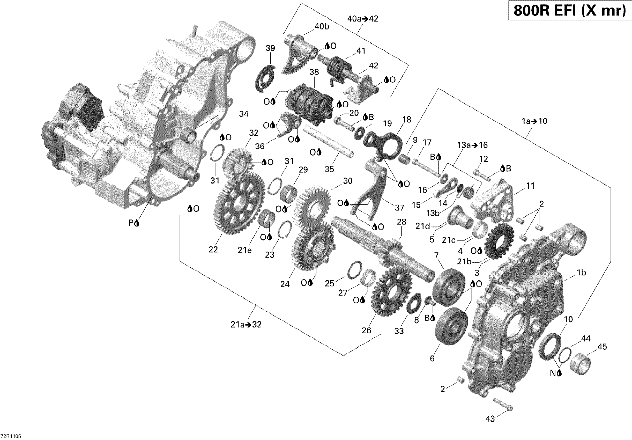 Can-Am Outlander 800R EFI, XMR, 2011 Gear Box And Components Diagram