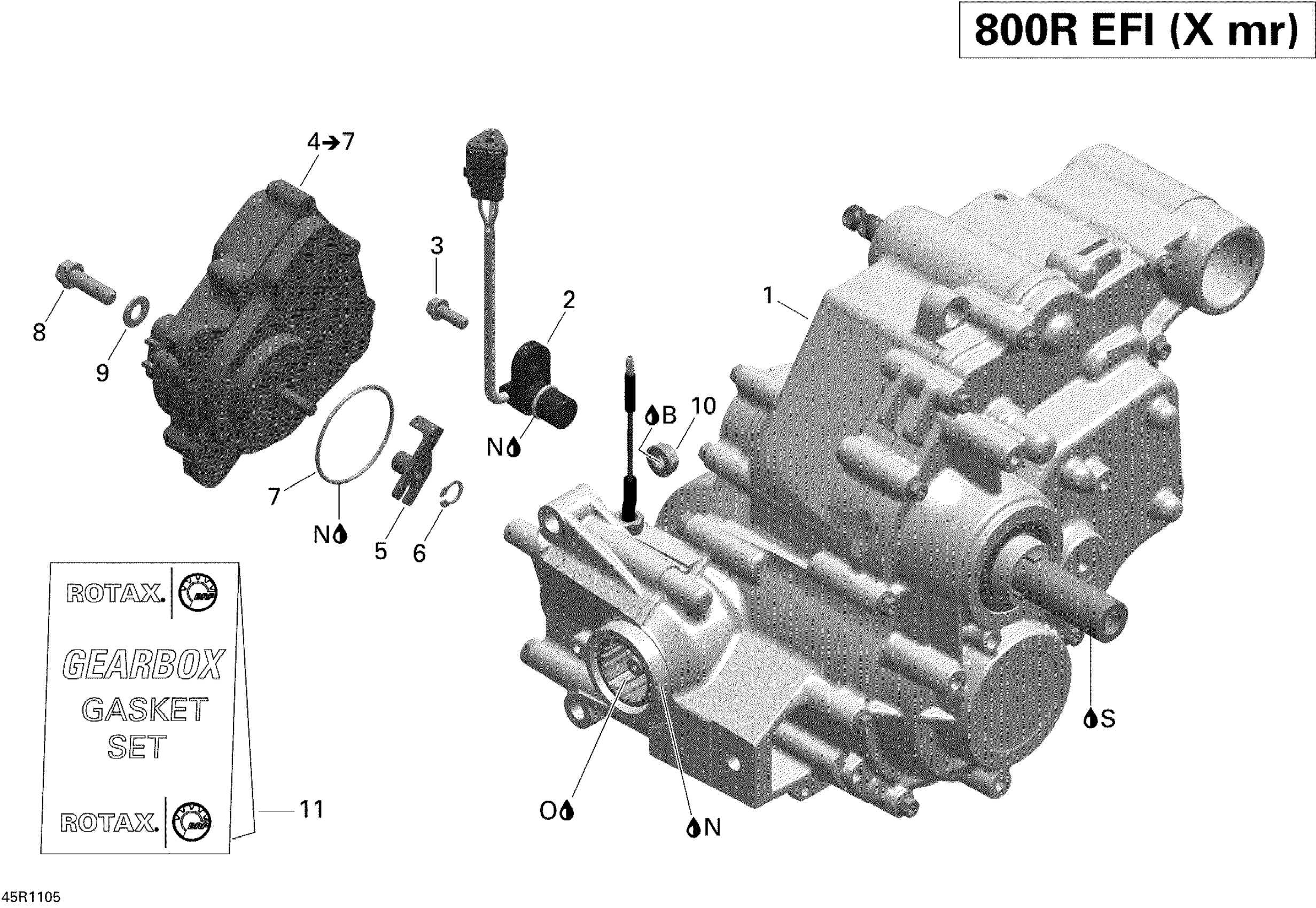 Can-Am Outlander 800R EFI, XMR, 2011 Gear Box Assy and 4x4 Actuator Diagram