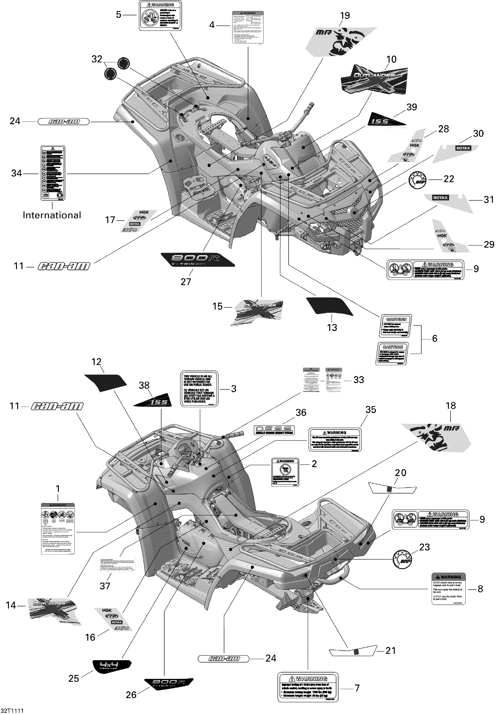 Can-Am Outlander 800R EFI, XMR, 2011 Decals Diagram