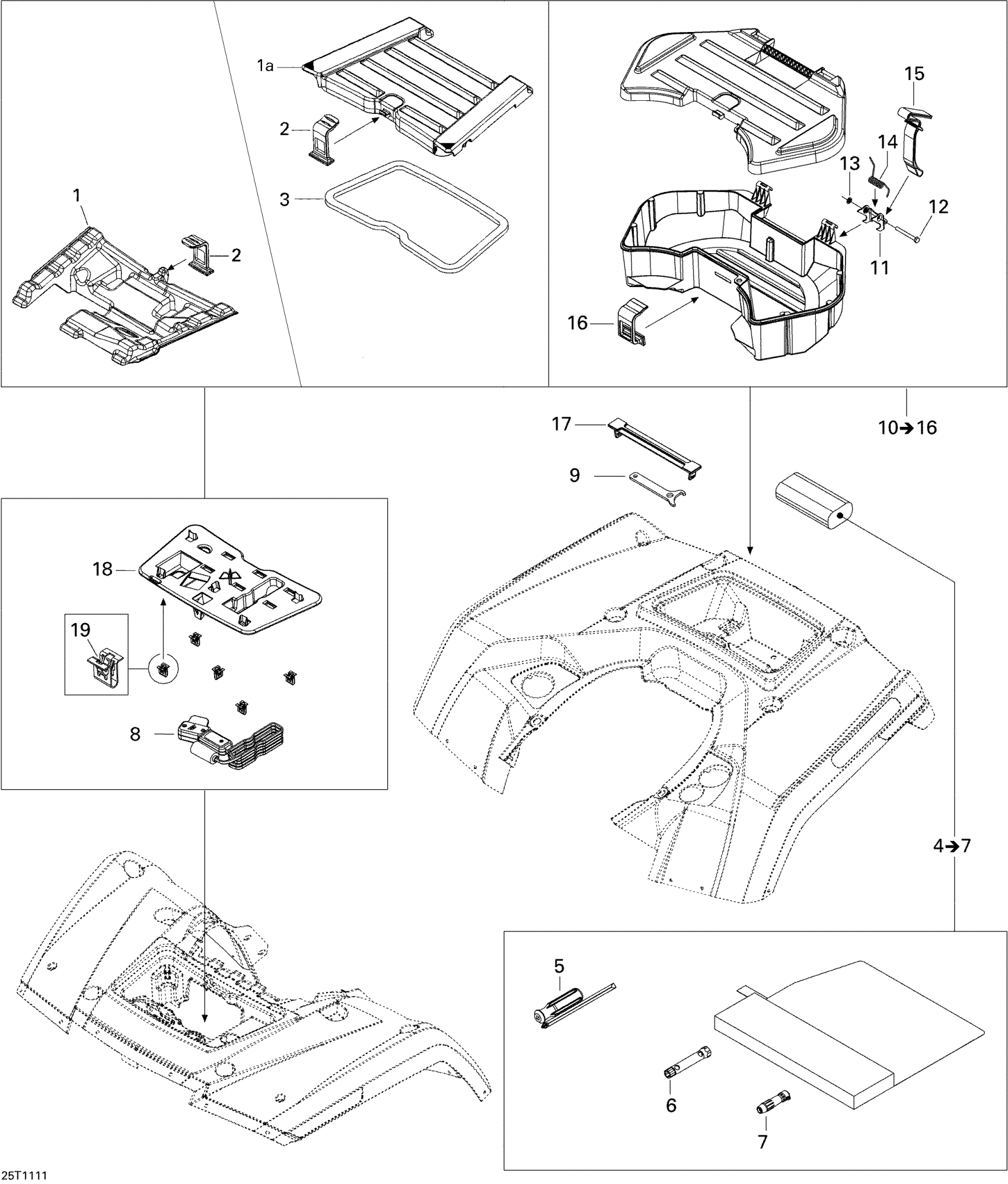 Can-Am Outlander 800R EFI, XMR, 2011 Front and Rear Trays Diagram