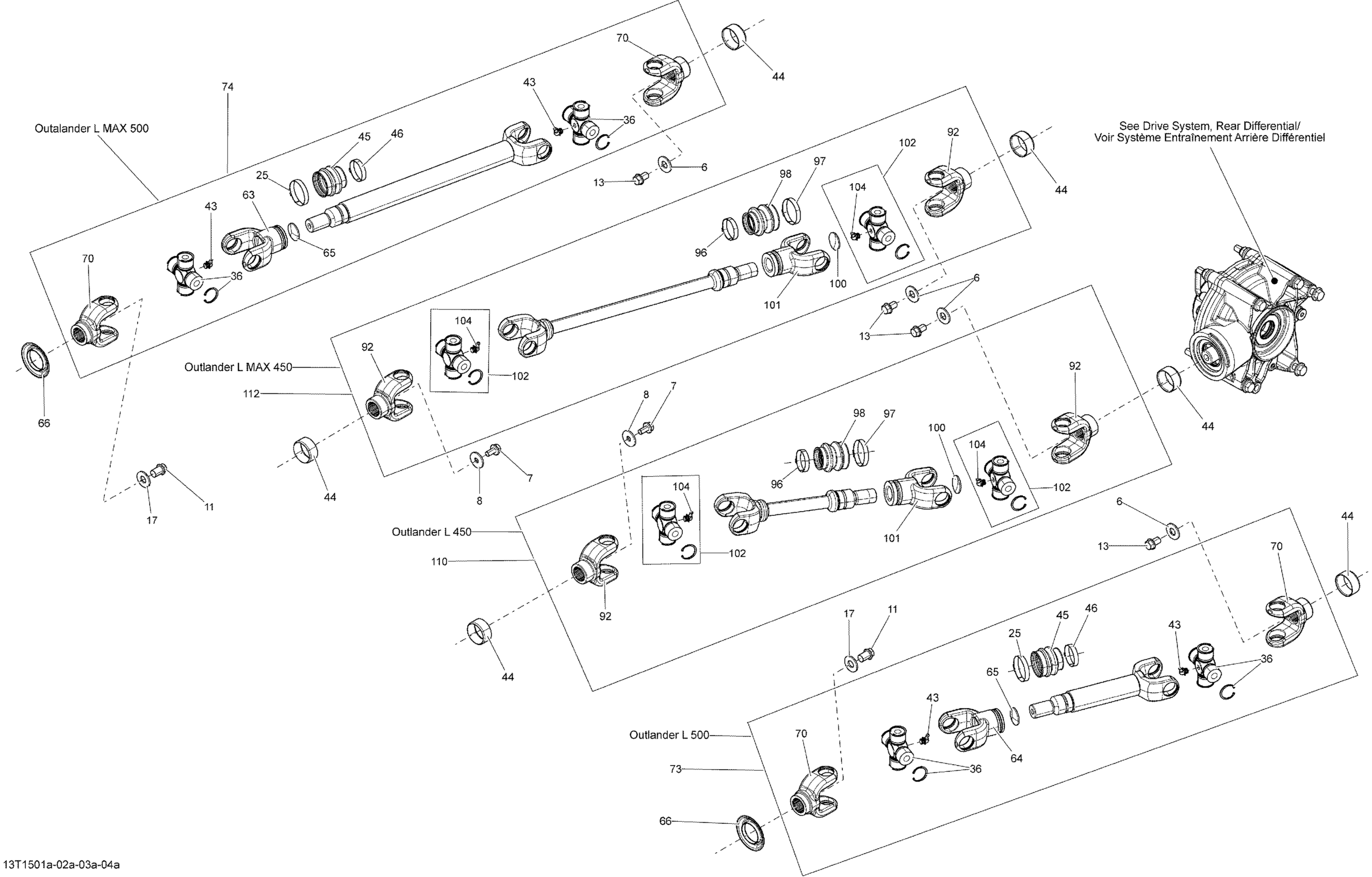 Can-Am Outlander L 450 EFI, 2015 Drive System, Rear Propeller Shaft_13T1501a Diagram