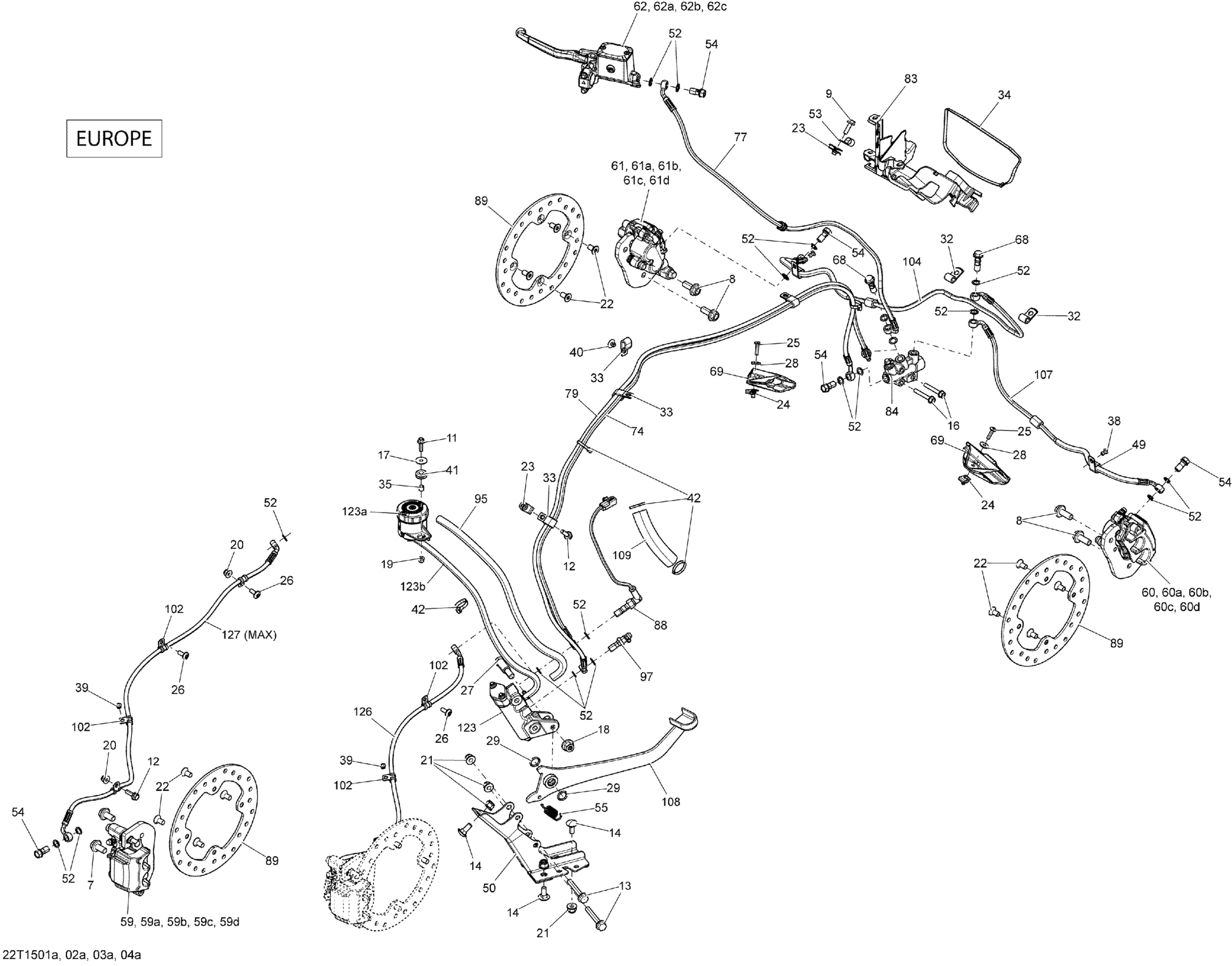 Can-Am Outlander L 500 EFI, 2015 Brakes Europe_22T1503a Diagram