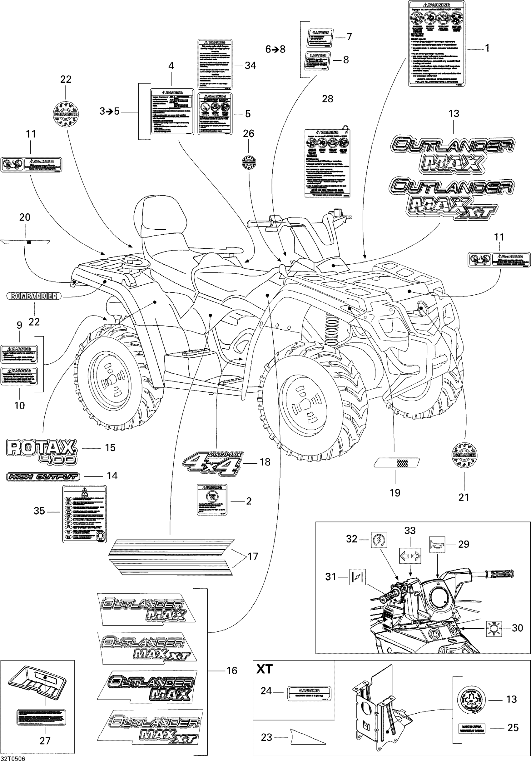 Can-Am Outlander MAX 400, 2005 Decals Diagram
