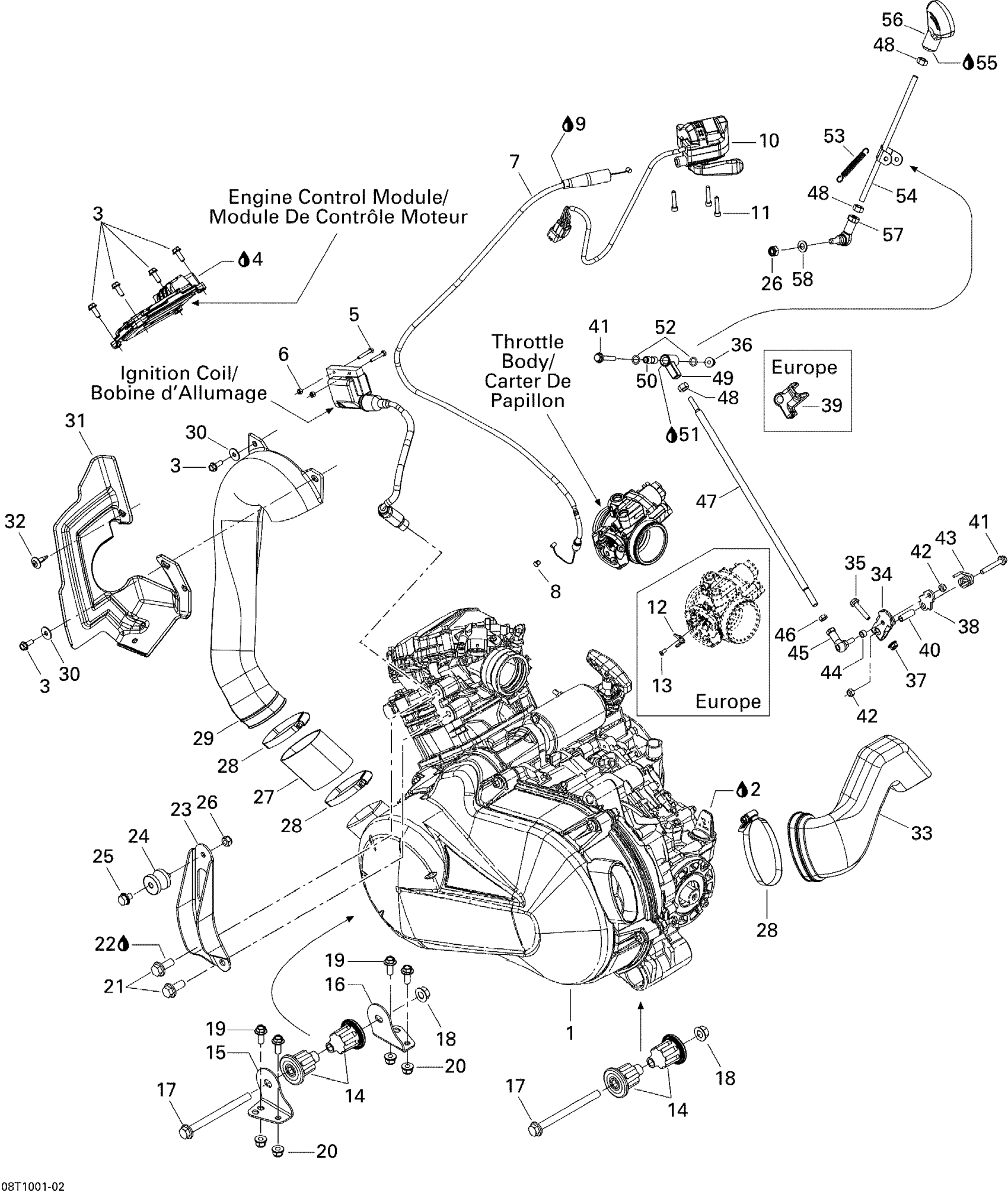 Can-Am Outlander Max 400 EFI, 2010 Engine And Engine Support Diagram