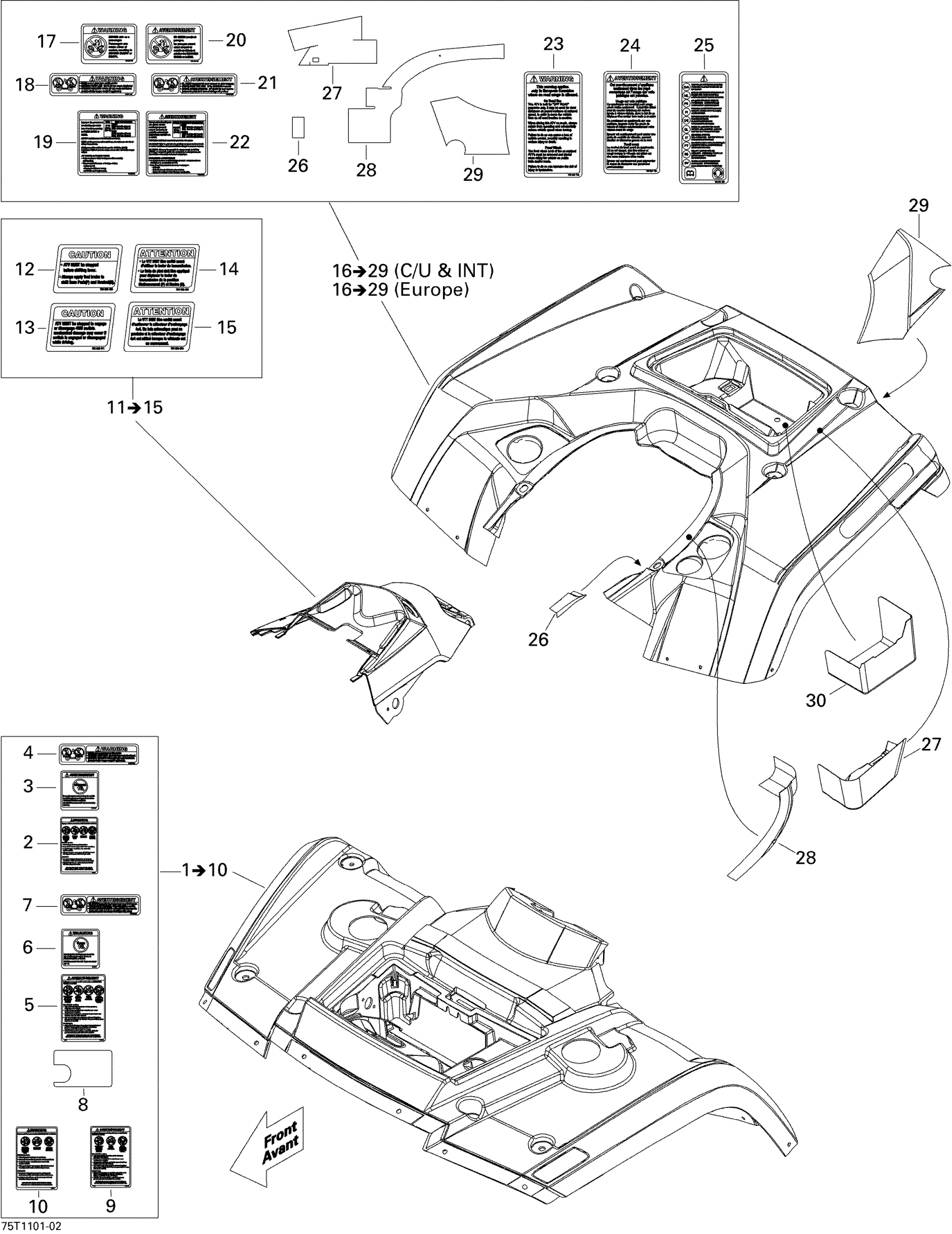 Can-Am Outlander Max 400 EFI, 2011 Fender And Central Panel Kit Diagram
