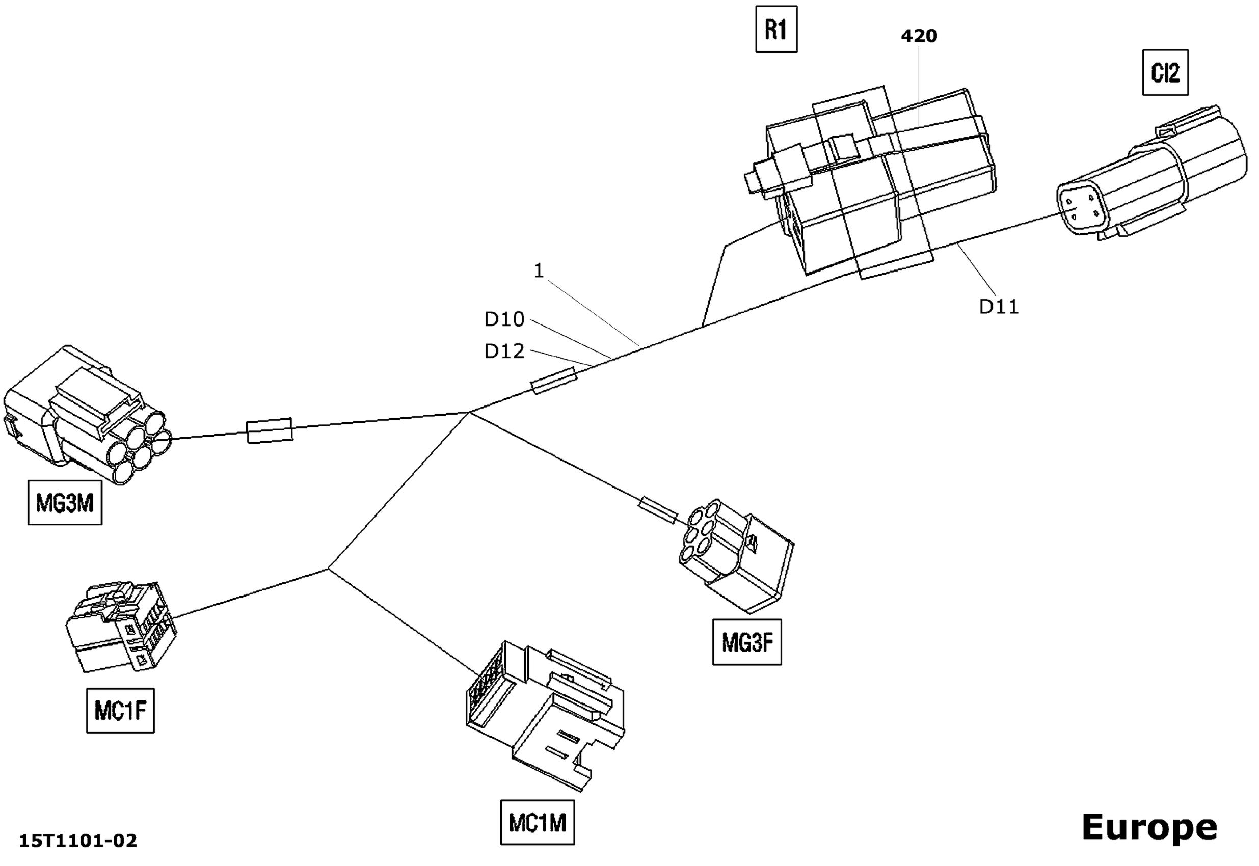 Electrical Harness, Front Section Added Europe