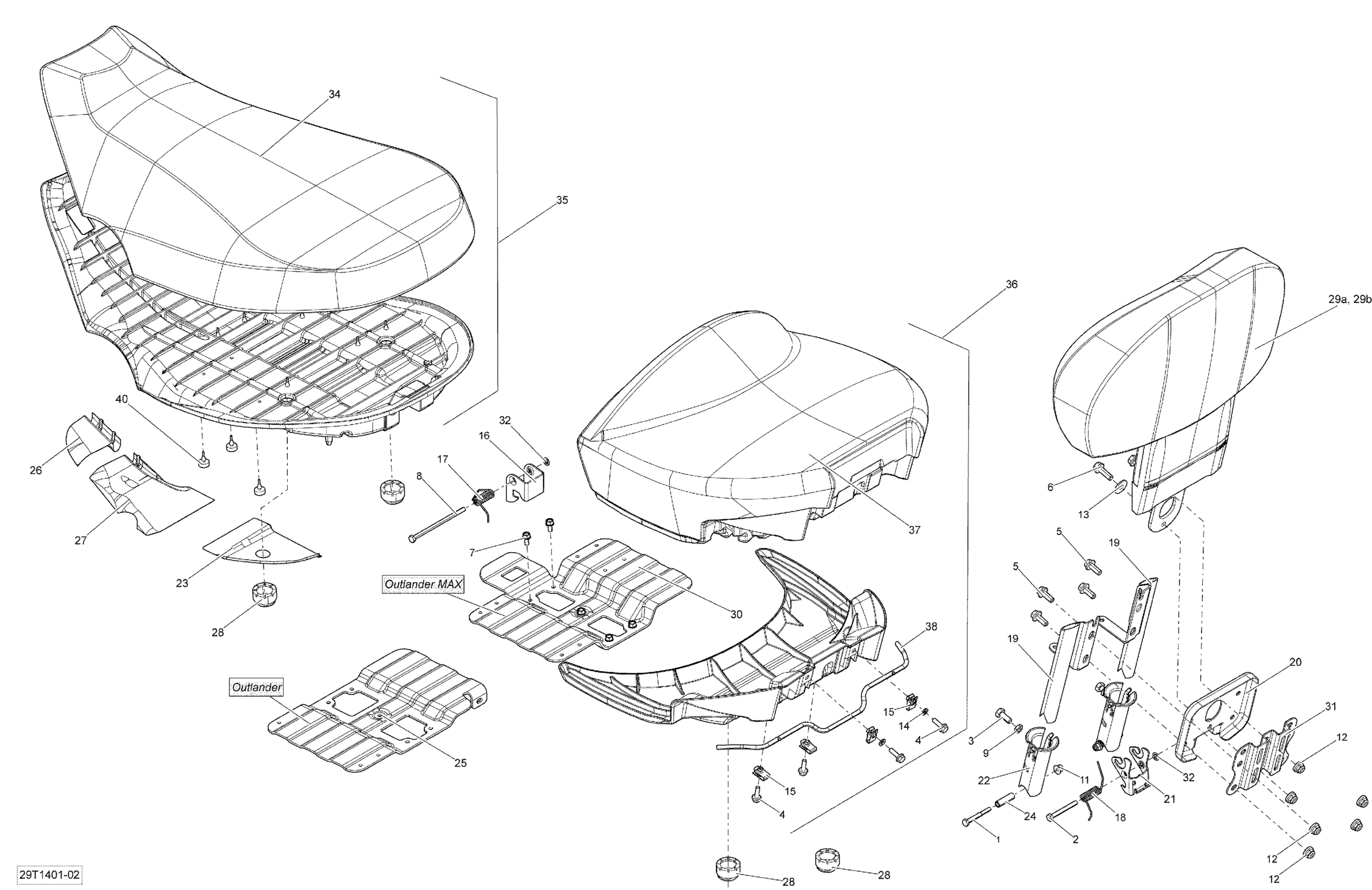 Can-Am Outlander Max 400 EFI, STD, XT, 2014 Seat Diagram
