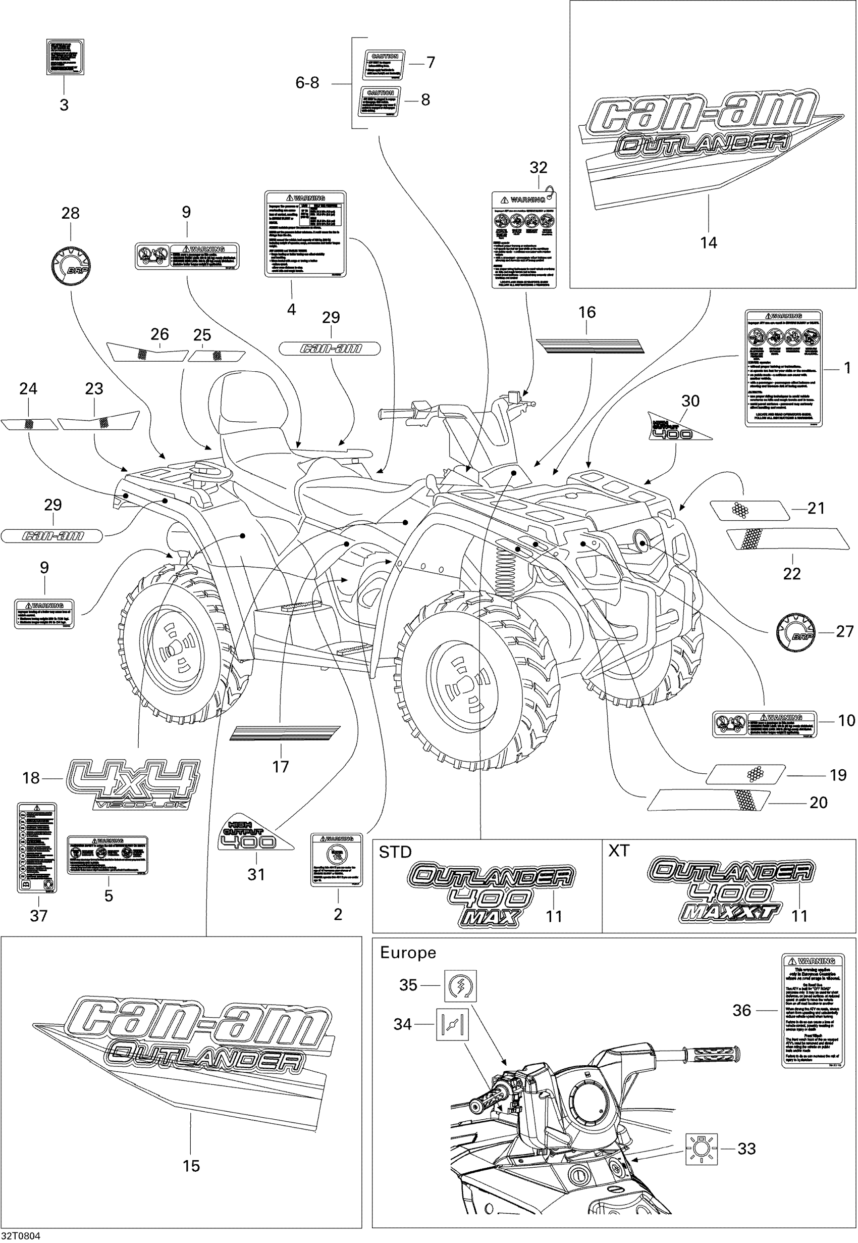 Can-Am Outlander MAX 400 STD, 2008 Decals STD Diagram