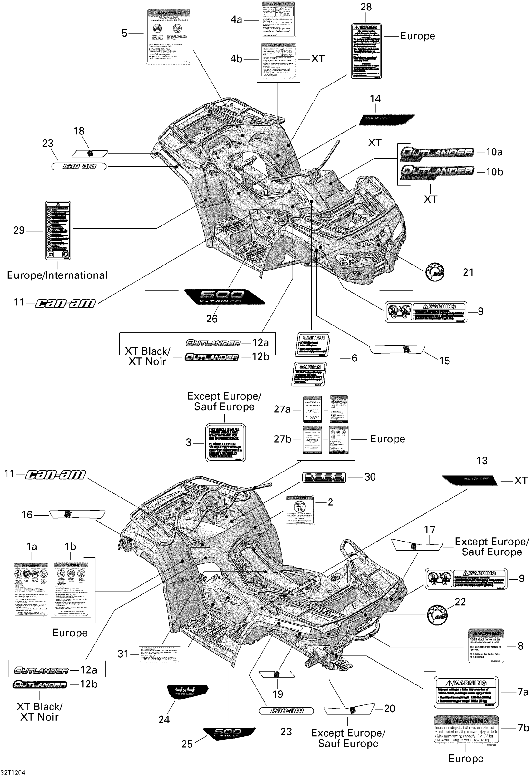 Can-Am Outlander MAX 500EFI STD & XT, 2012 Decals Diagram