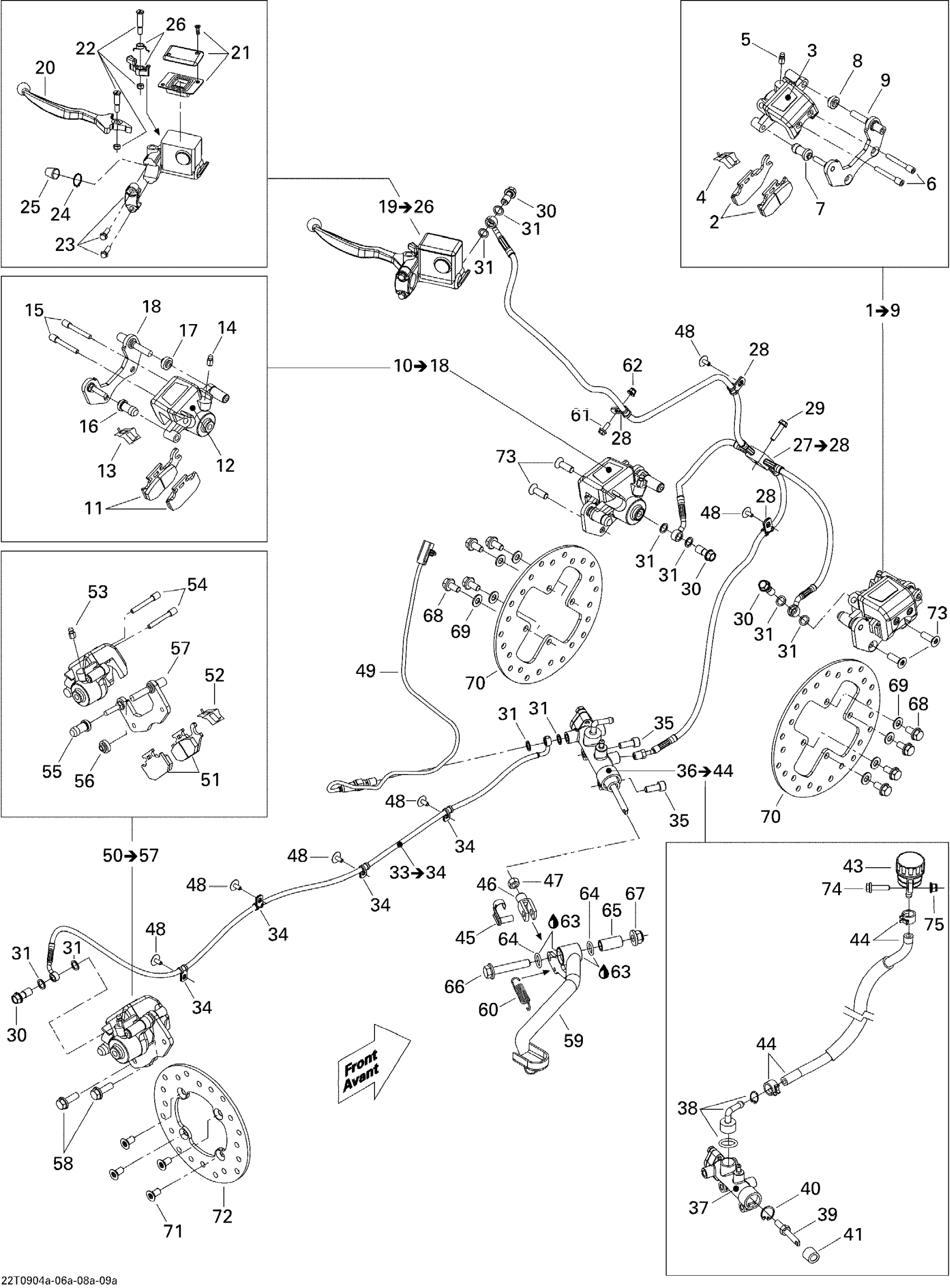Can-Am Outlander Max 650 EFI, 2009 Hydraulic Brakes Diagram