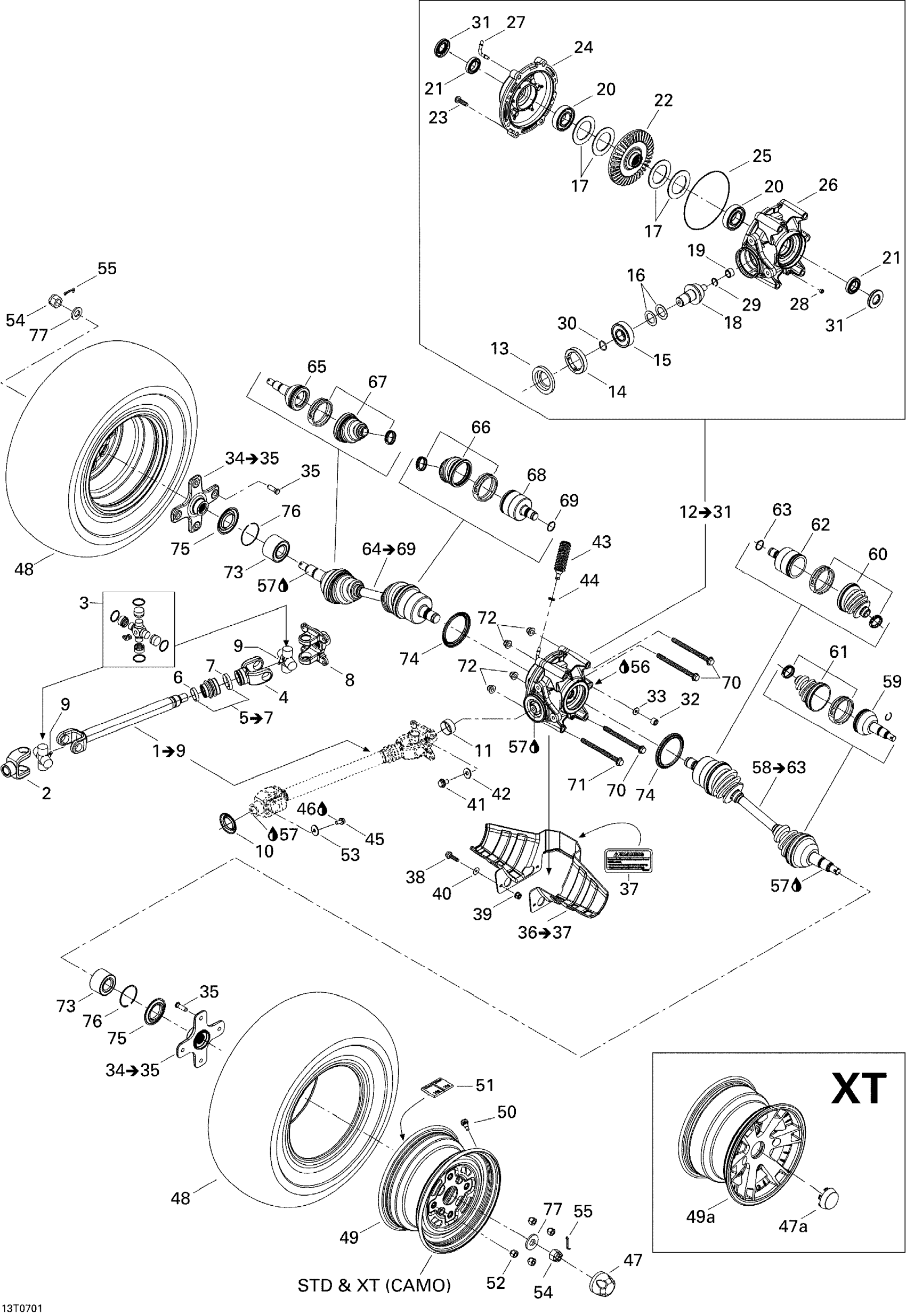 Can-Am Outlander MAX 650 XT 4 X 4, 2007 Drive System, Rear XT Diagram