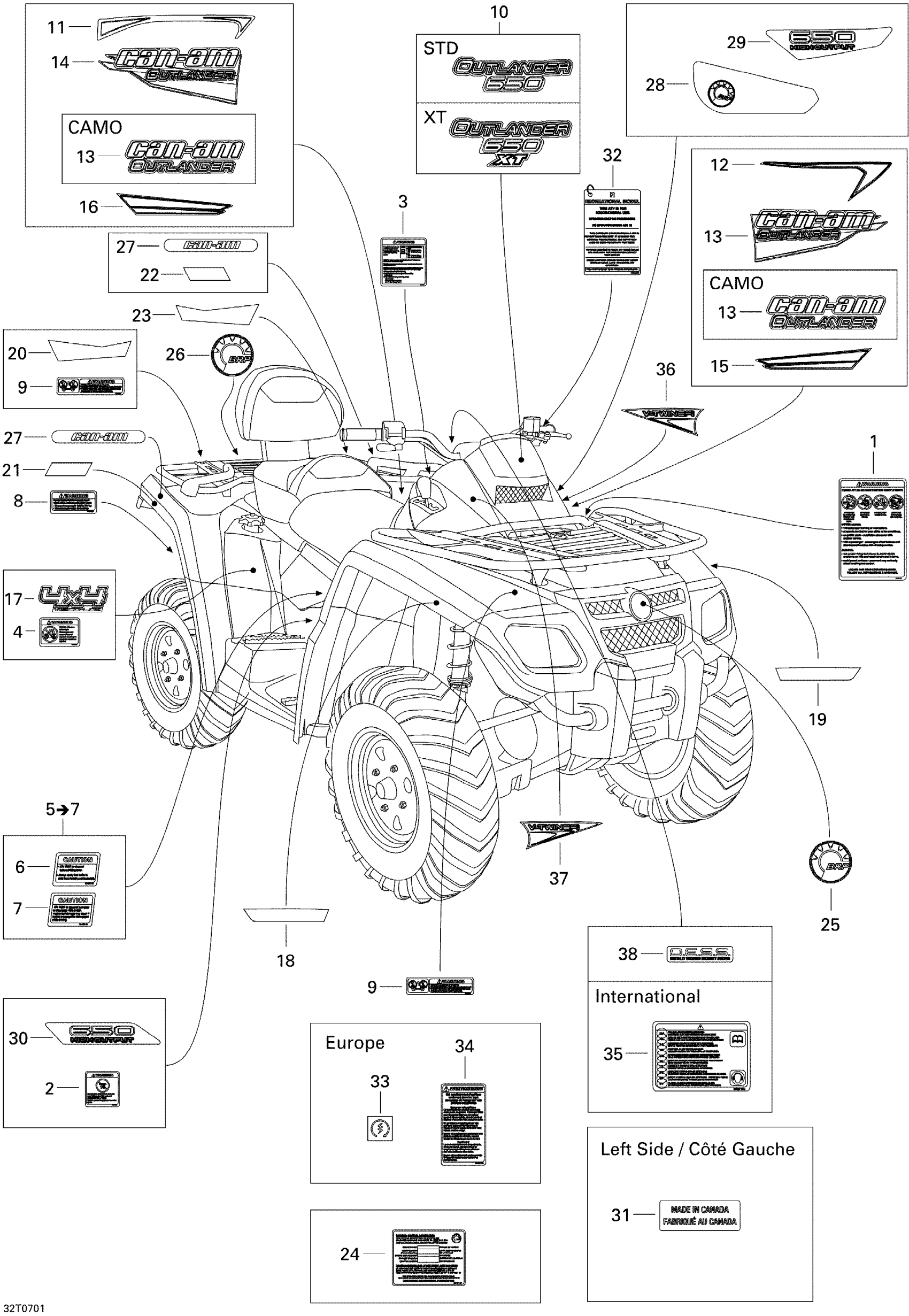 Can-Am Outlander MAX 650 XT 4 X 4, 2007 Decals XT Diagram