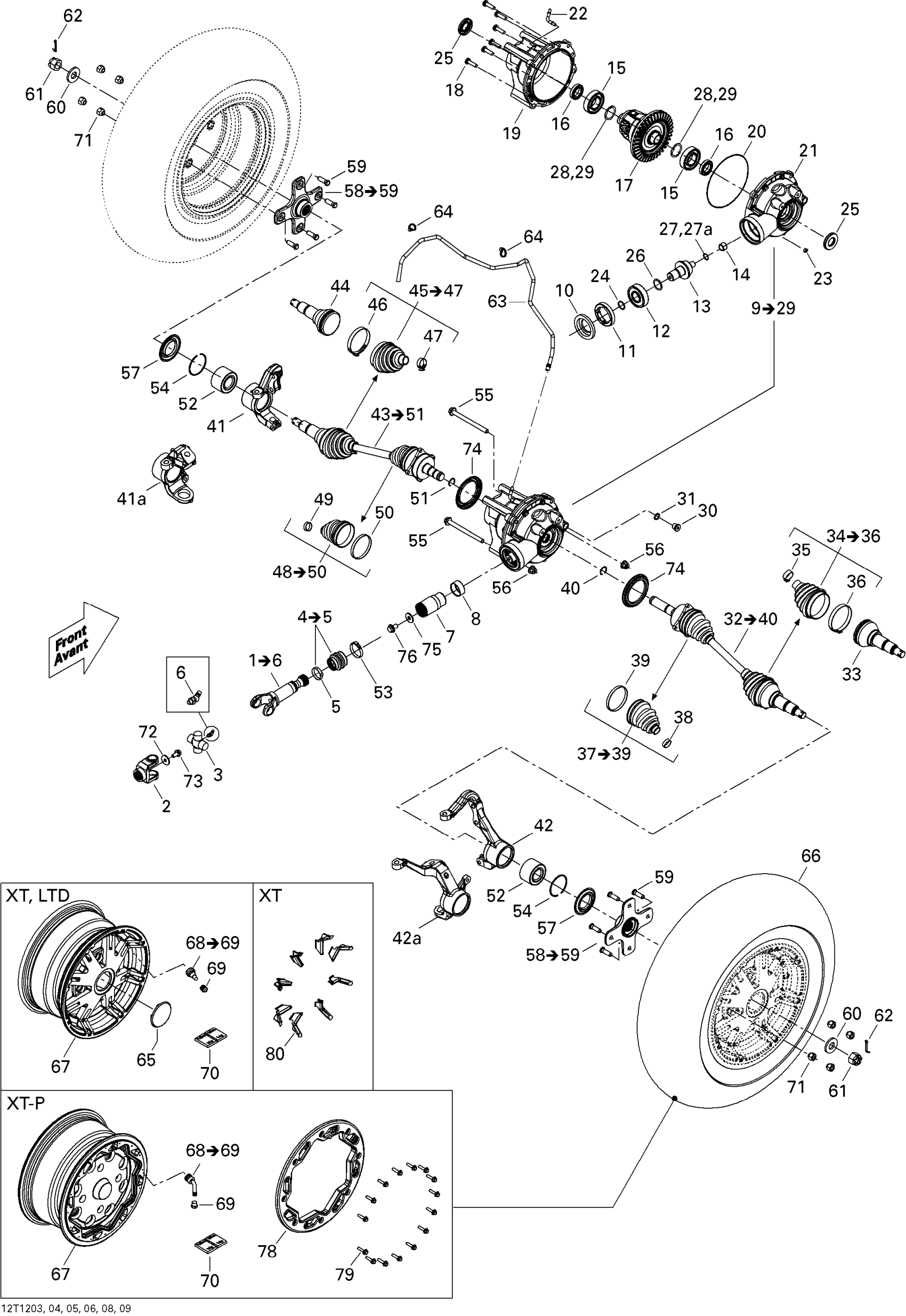 Can-Am Outlander MAX 650EFI STD, XT & XT-P, 2012 Drive System, Front Diagram