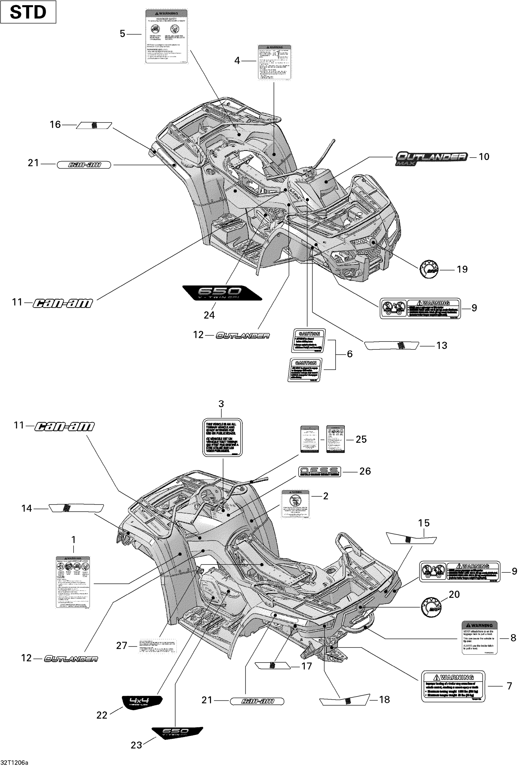 Can-Am Outlander MAX 650EFI STD, XT & XT-P, 2012 Decals STD Diagram