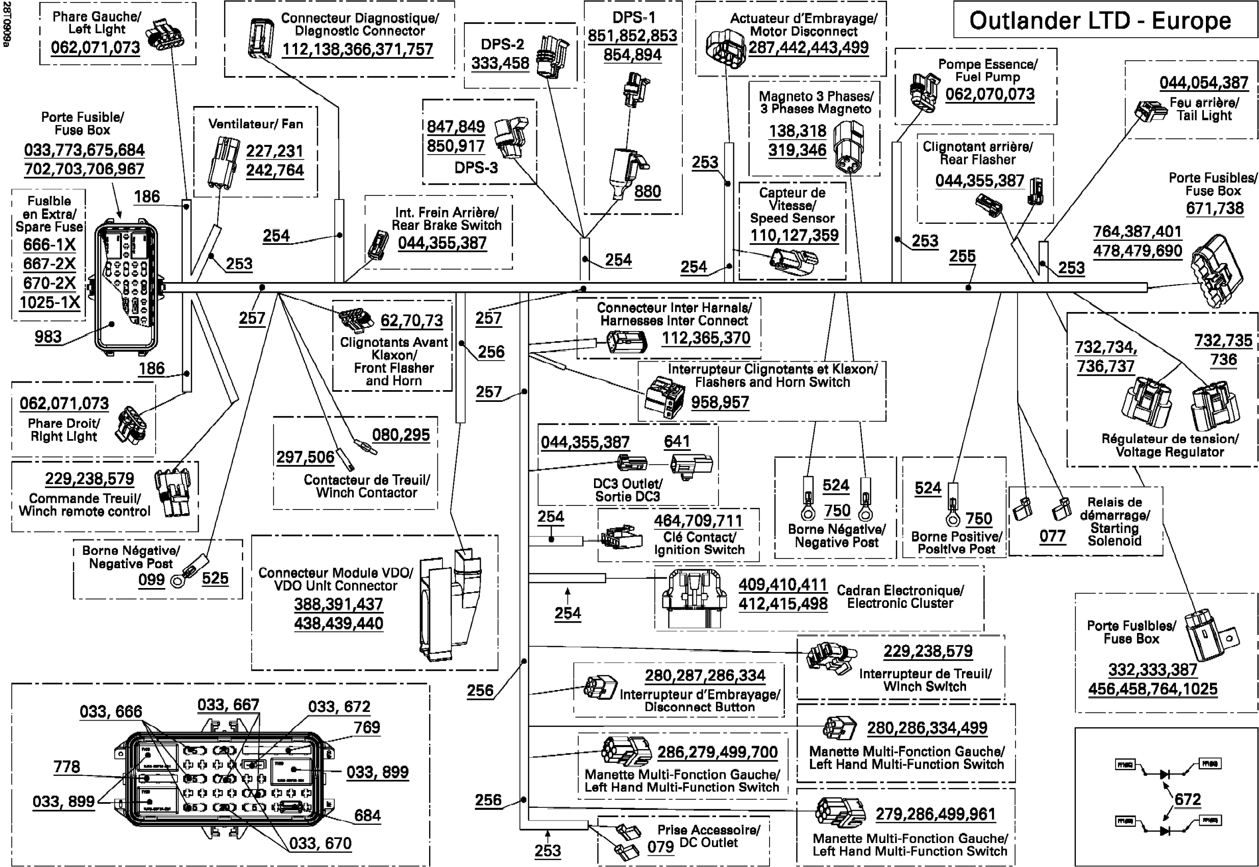 Can-Am Outlander Max 800R EFI Ltd, 2009 Main Harness EURO Diagram