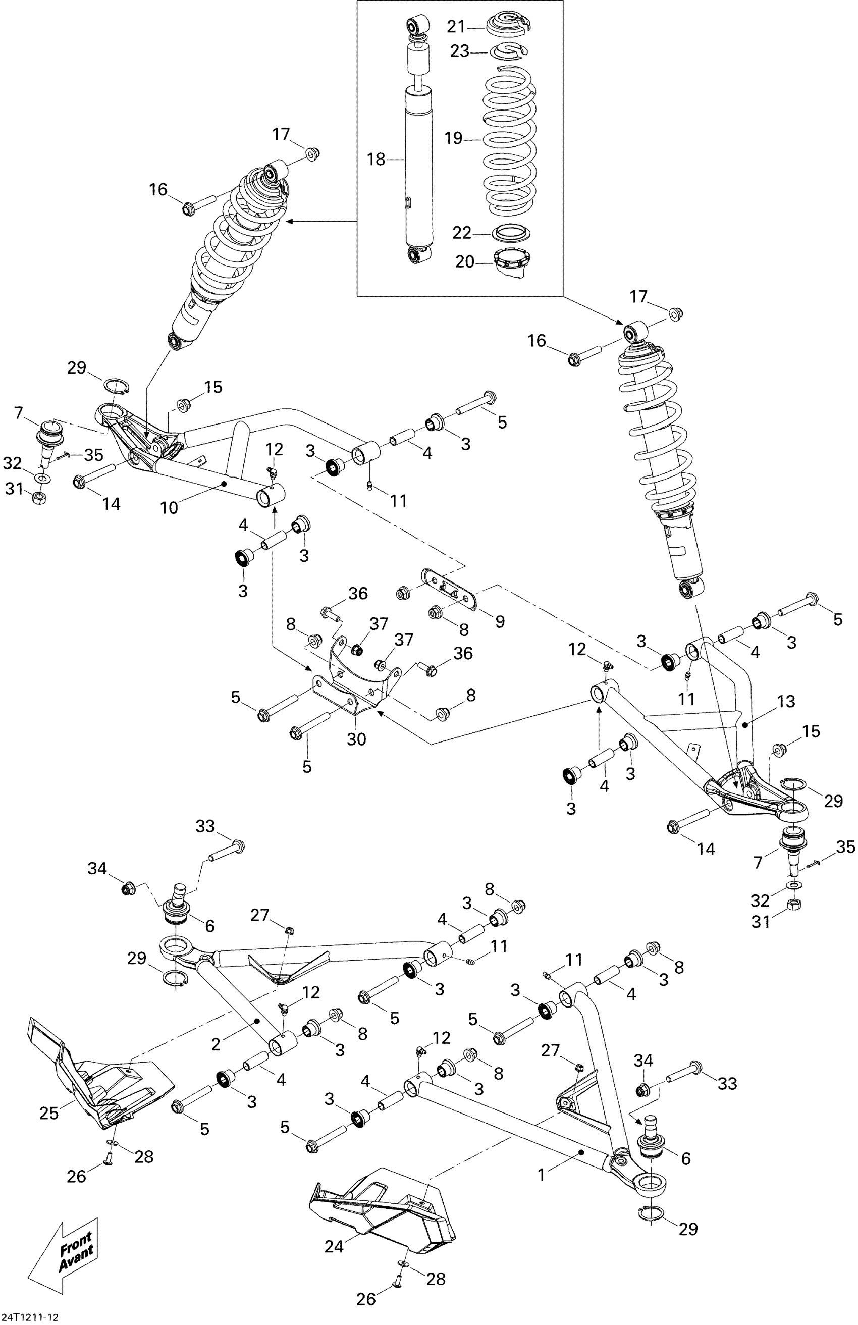 Can-Am Outlander STD, XT, 1000 EFI, 2012 Front Suspension Diagram