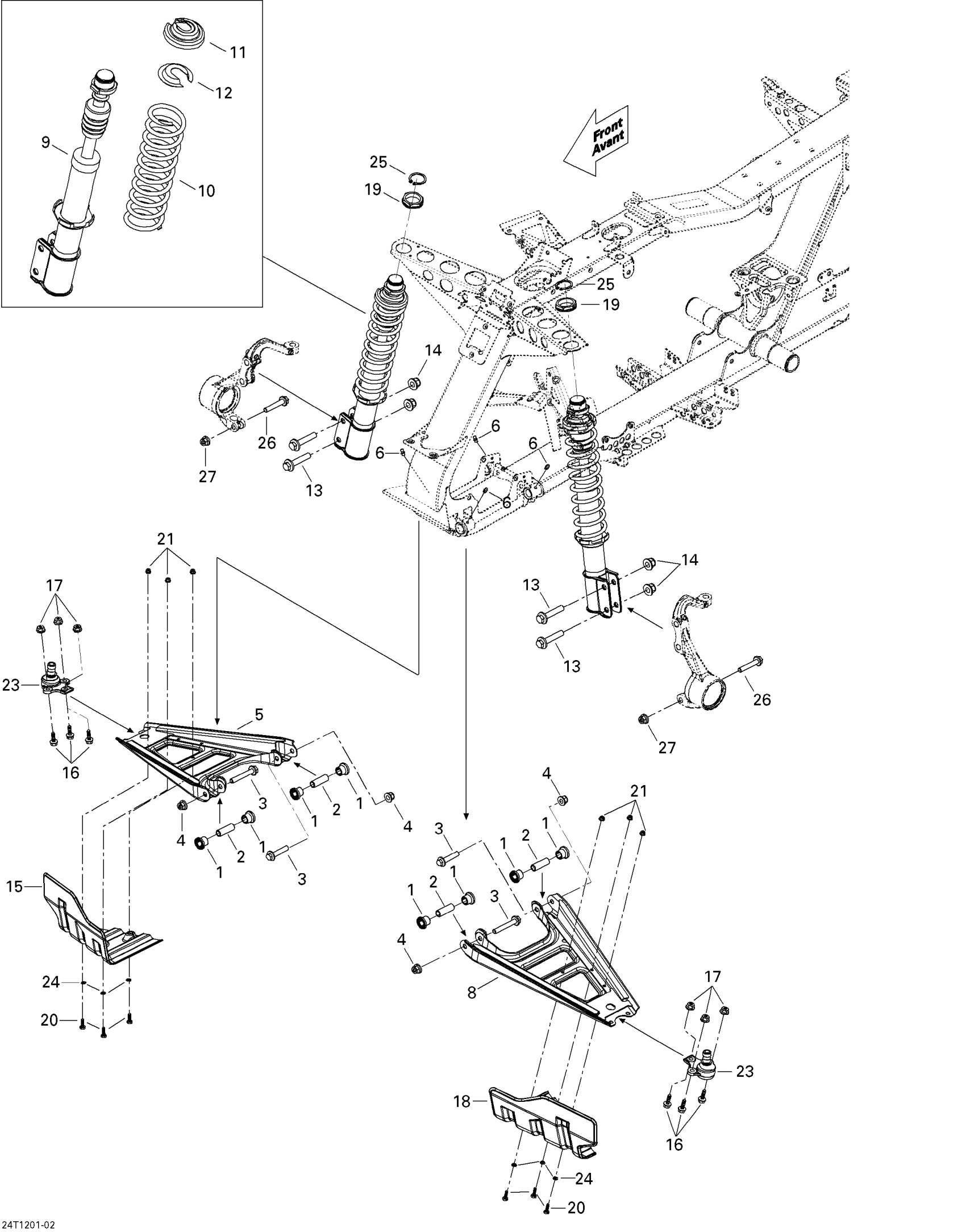 Can-Am Outlander STD, XT, 400 EFI, 2012 Front Suspension Diagram
