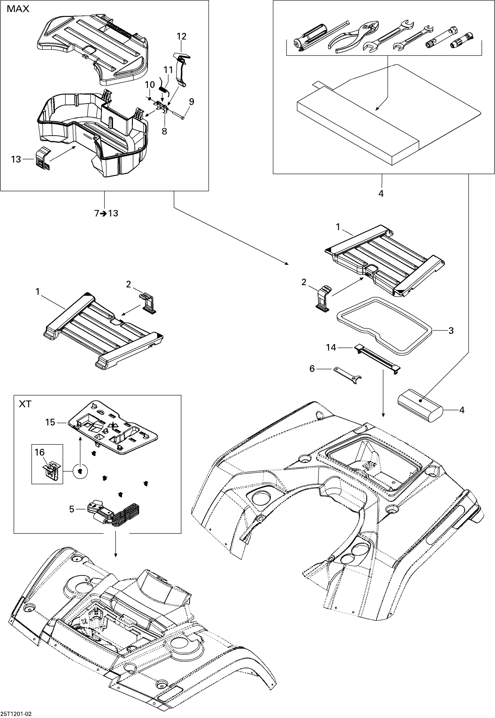 Can-Am Outlander STD, XT, 400 EFI, 2012 Front and Rear Trays Diagram