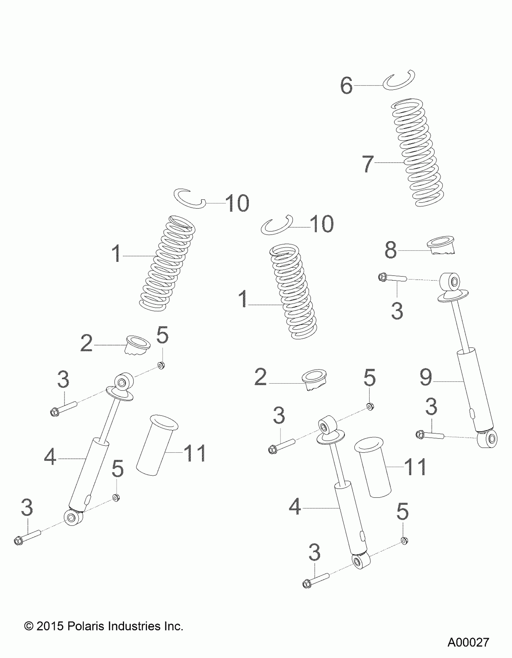 Polaris OUTLAW 110 (R02) - A24YAK11B1/B5 SUSPENSION, SHOCKS - A24YAK11B1/B5 (A00027) Diagram
