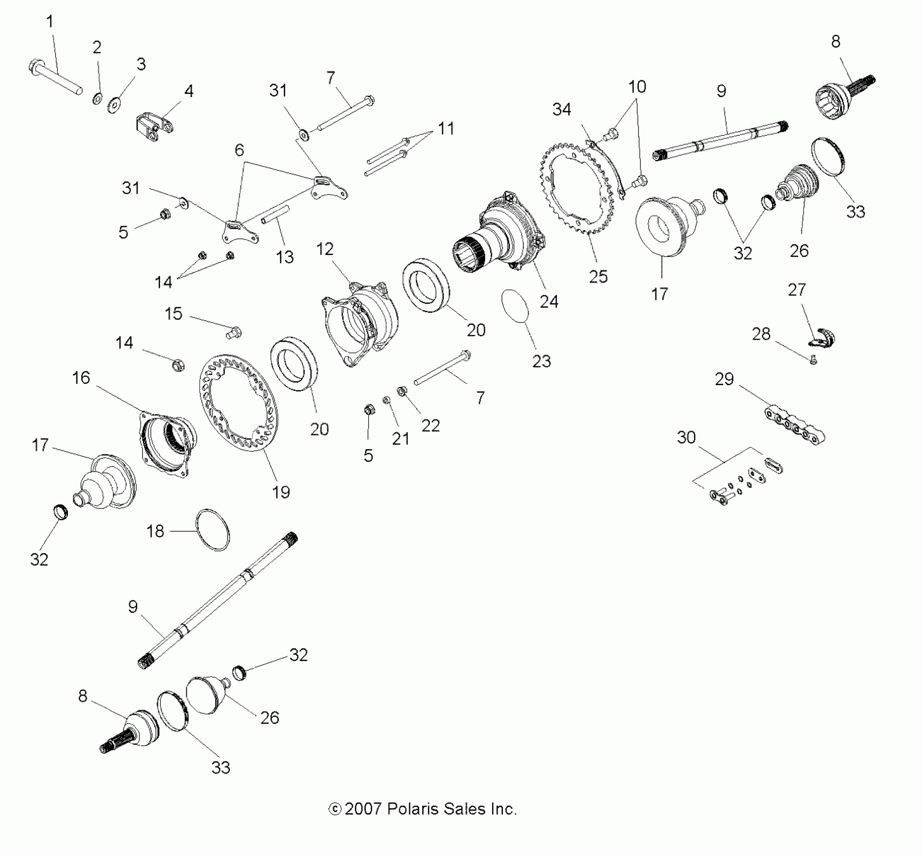 Polaris OUTLAW 525 IRS - A11GP52AA DRIVE TRAIN, REAR DRIVE SHAFT ASM. - A11GP52AA (49ATVSHAFTDRIVERR08OUT525IRS) Diagram
