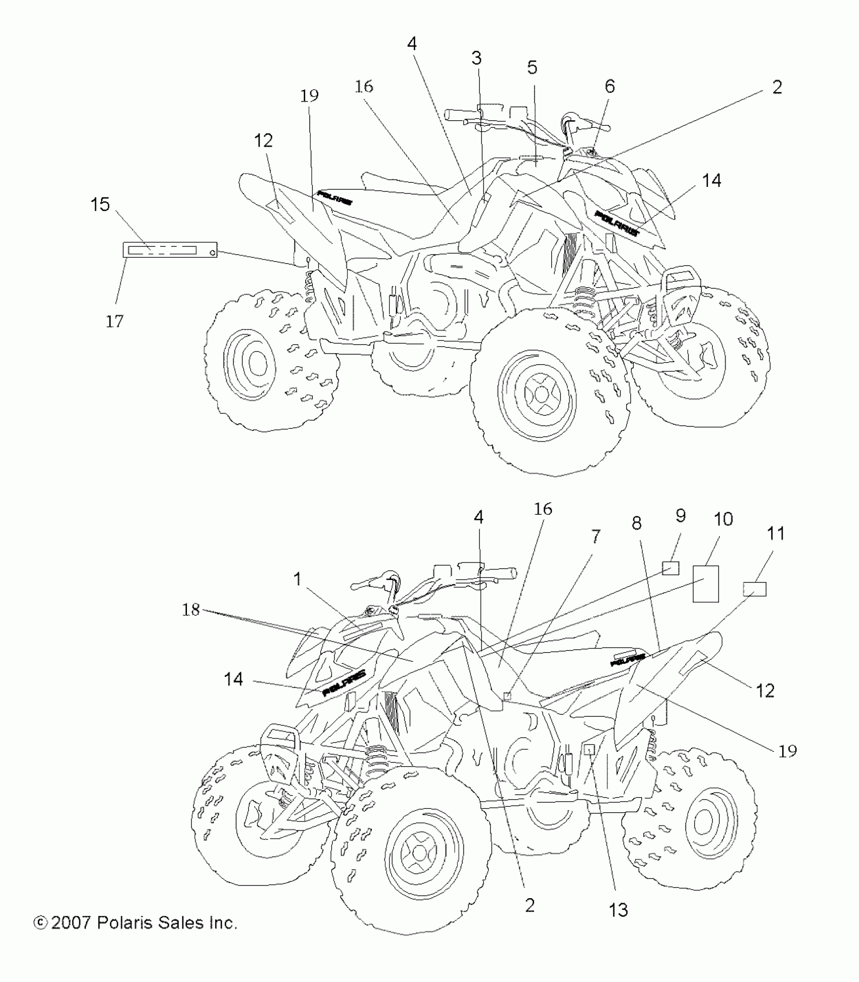 Polaris OUTLAW 525 "S" - A08GJ52AA/AB/AC BODY, DECALS - A08GJ52AA/AB/AC (49ATVDECAL08OUT525) Diagram