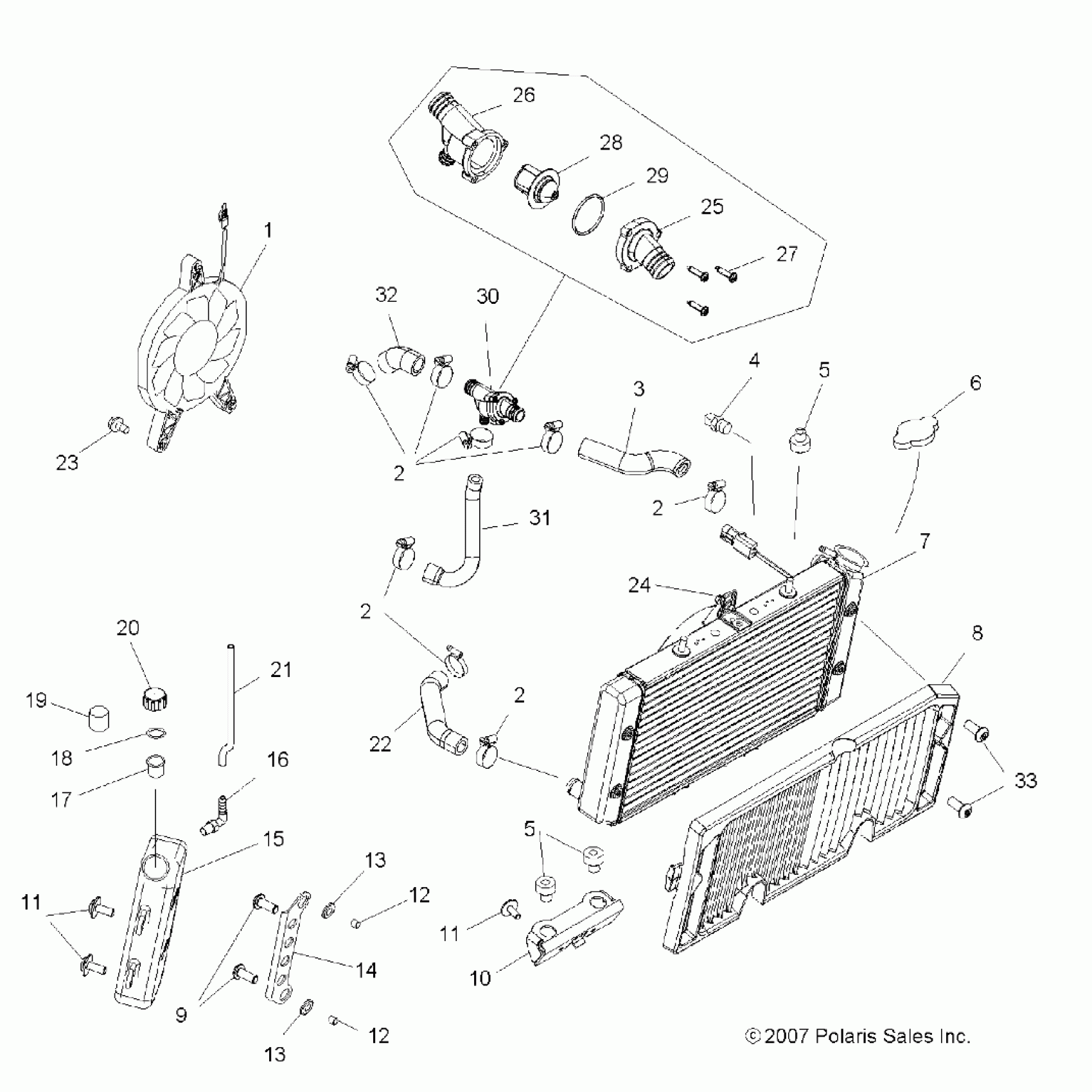 Polaris OUTLAW 525 "S" - A08GJ52AA/AB/AC ENGINE, COOLING SYSTEM - A08GJ52AA/AB/AC (49ATVCOOL08OUT525S) Diagram