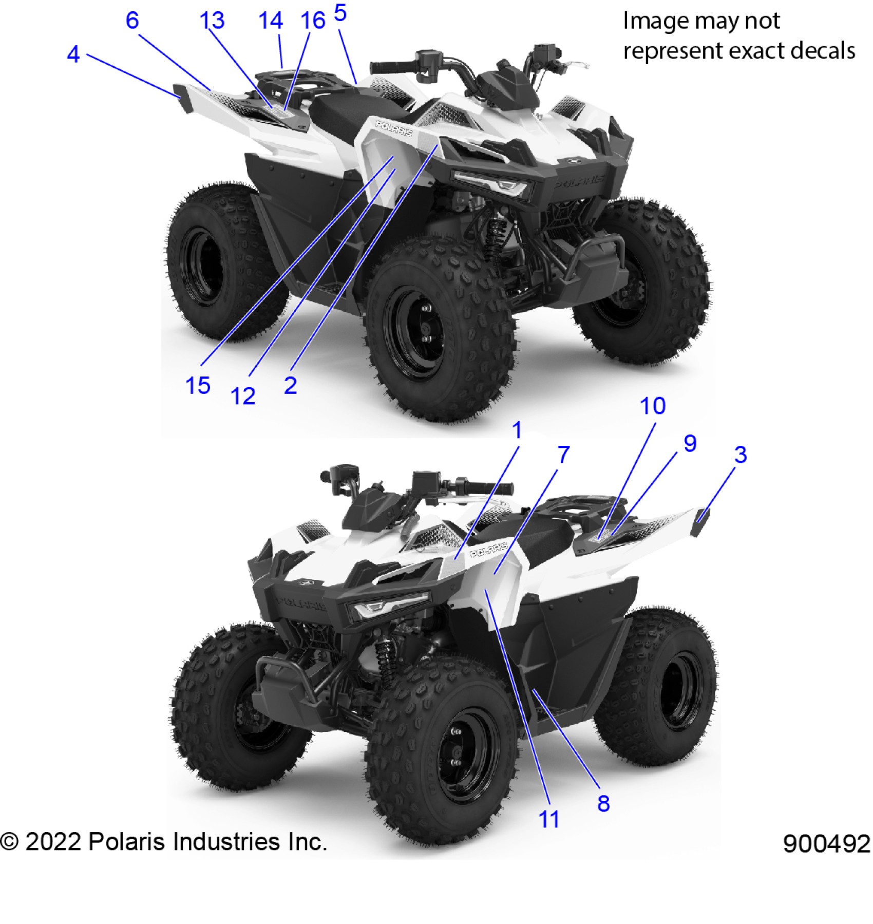 BODY, DECALS WARNING AND REFLECTORS - A23HBBO7B3/B7 (900492)