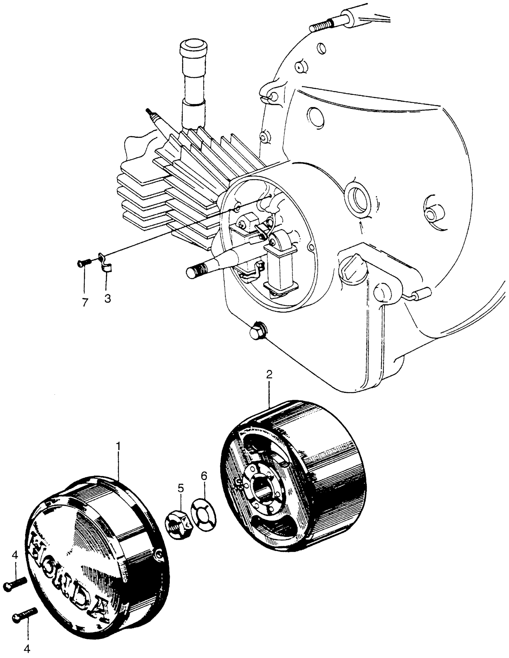 Honda P50A MOTORCYCLE, JPN, VIN# P50-100001 ALTERNATOR COVER + FLYWHEEL Diagram