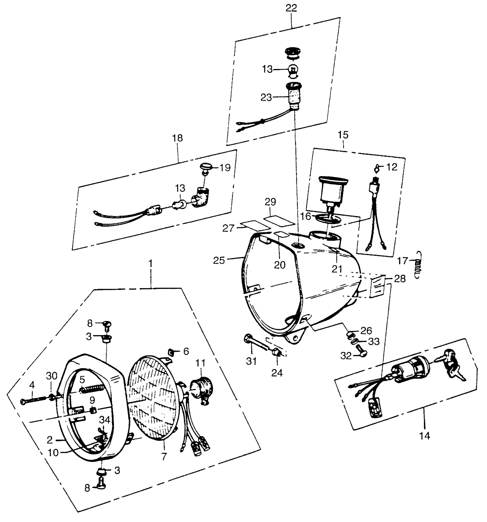 Honda PA50IA (78) MOPED-20 MPH, BE, VIN# PA50M-1100001 HEADLIGHT + SPEEDOMETER Diagram