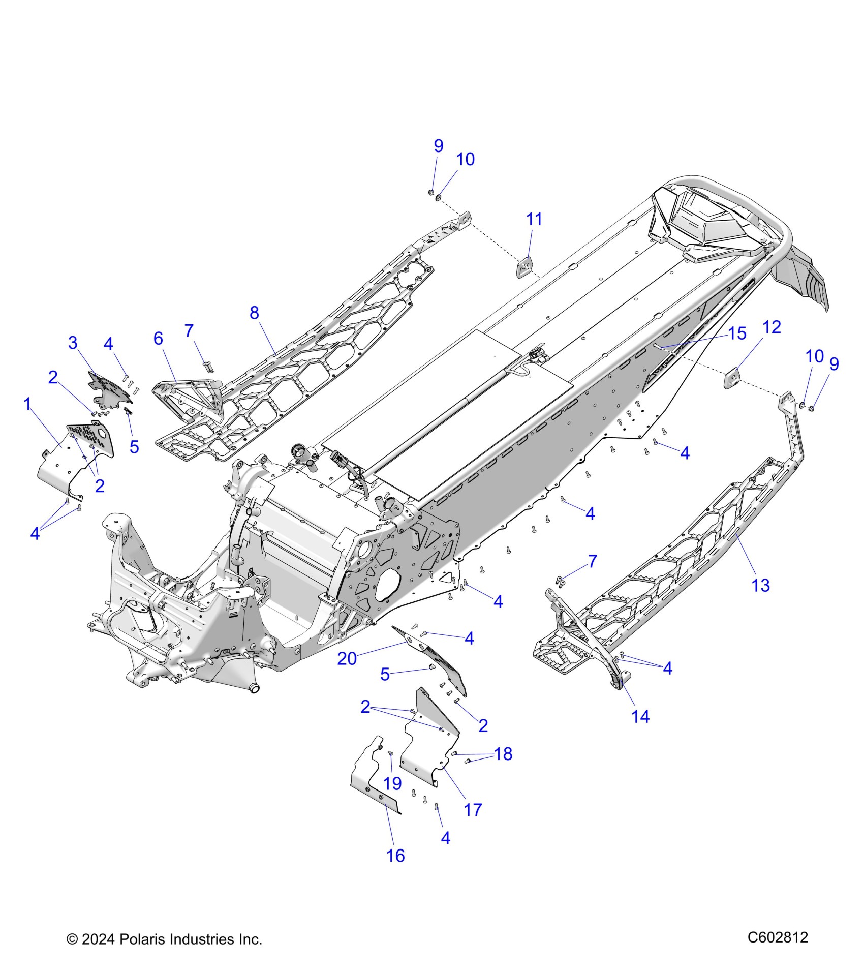 Polaris PATRIOT 9R INDY XCR 128 ALL OPTIONS (R02) - S25TKL9BS CHASSIS, FOOTRESTS, and RUNNINGBOARDS - S25TKL9BS (C602812) Diagram