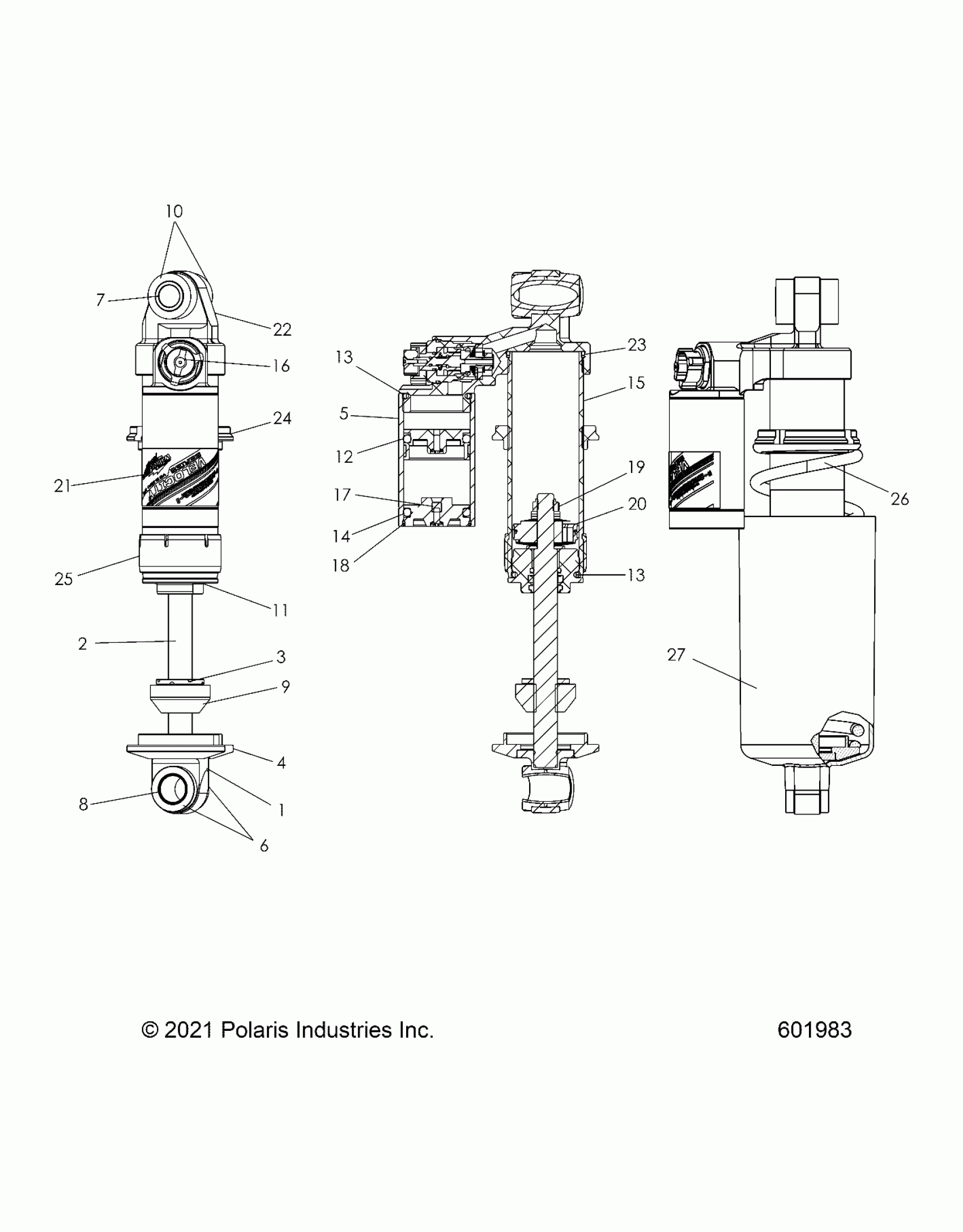 Polaris PATRIOT 9R INDY XCR 128 ALL OPTIONS (R02) - S25TKL9BS SUSPENSION, SHOCK, FRONT TRACK - S25TKL9BS (601983) Diagram