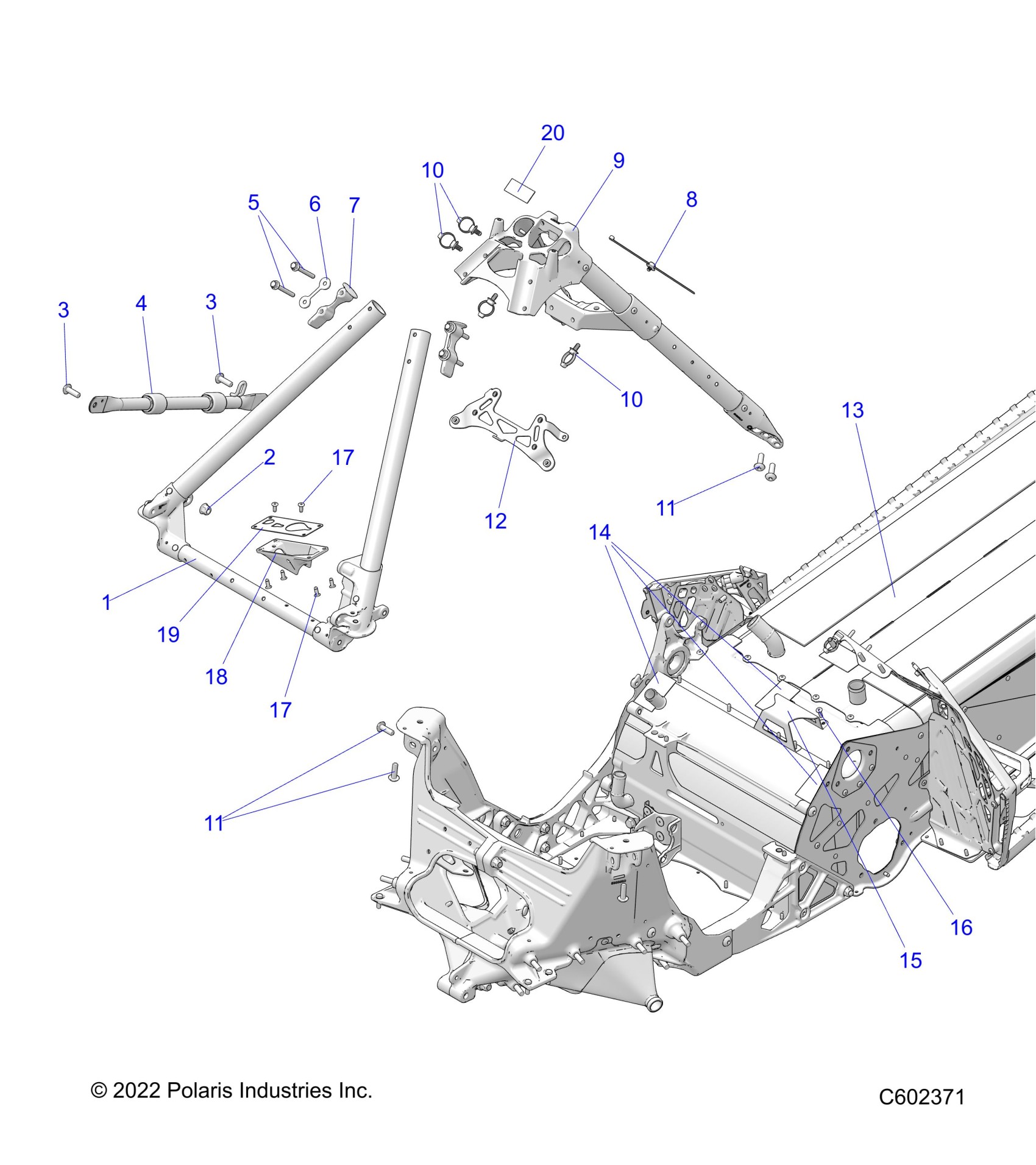 Polaris PATRIOT 9R RMK KHAOS SLASH 163/165 ALL OPTIONS (R02) - S23TGG9BS/TGY9BS CHASSIS, CHASSIS ASM. and OVER STRUCTURE - S23TGG9BS/TGY9BS (C602371) Diagram
